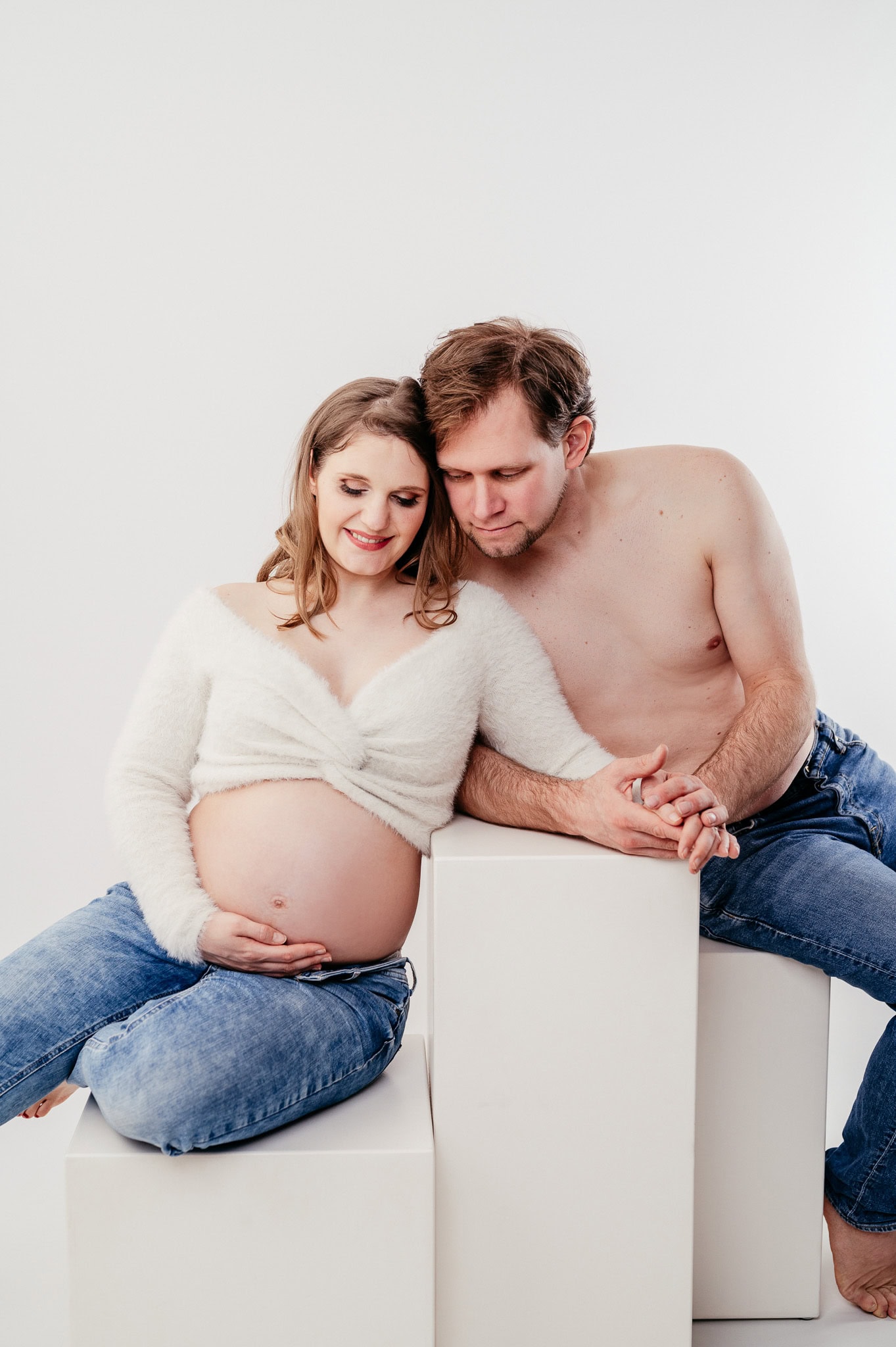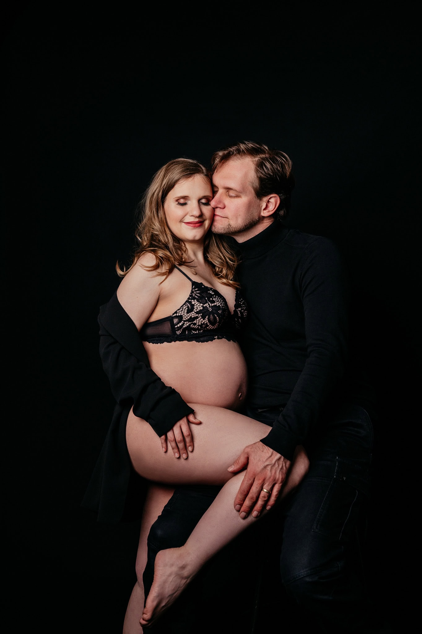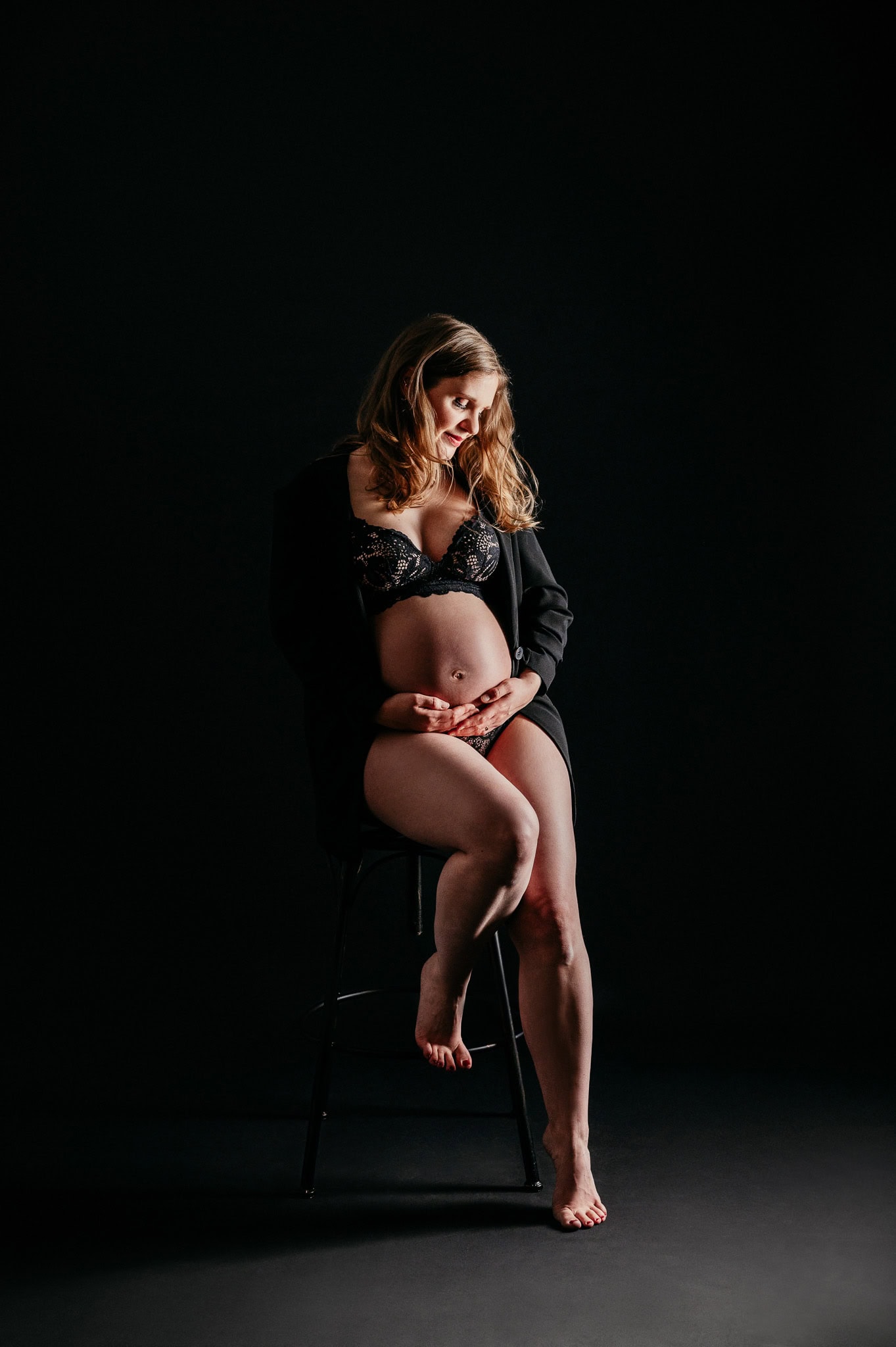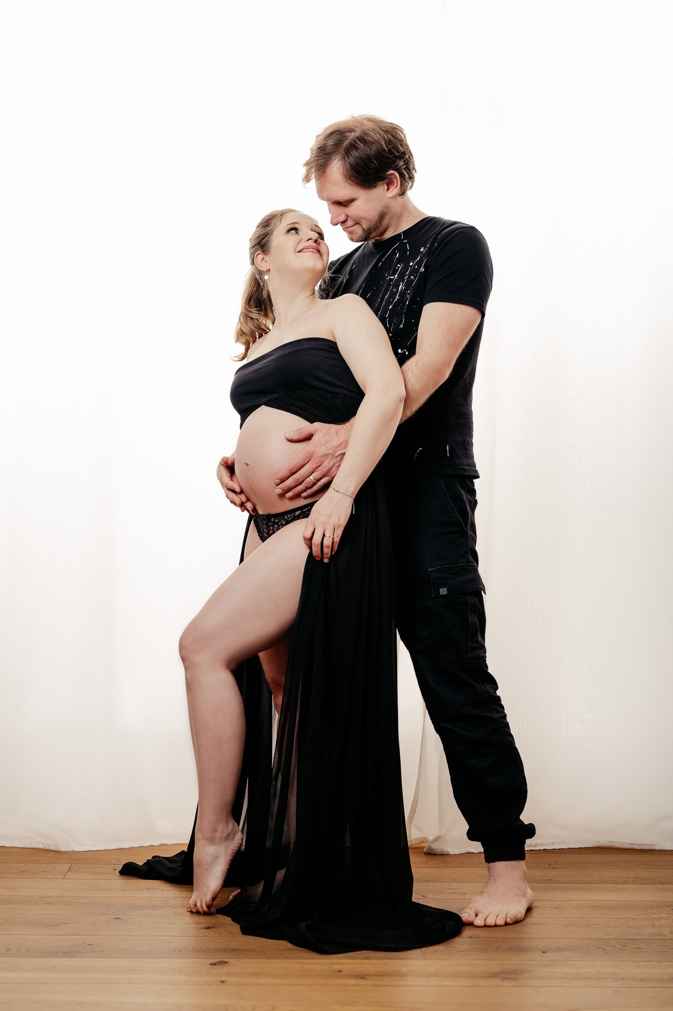 Durch die gekonnte Lichtsetzung im Studio – sei es sanftes Tageslicht oder gezielt eingesetzte Studiobeleuchtung – entstehen zarte Spiele aus Licht und Schatten. Dein Babybauch wird so elegant modelliert, dass jede Rundung betont wird. Das Ergebnis – edle, fast schon künstlerische Aufnahmen, die Deinen schwangeren Körper auf eine ganz besondere Weise in Szene setzen.