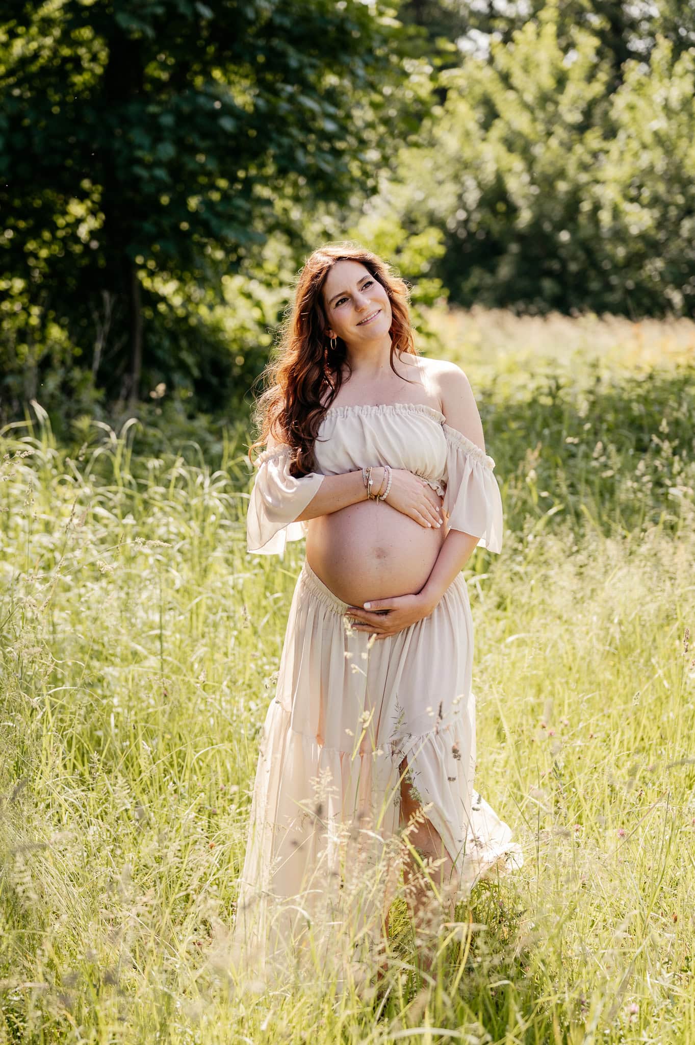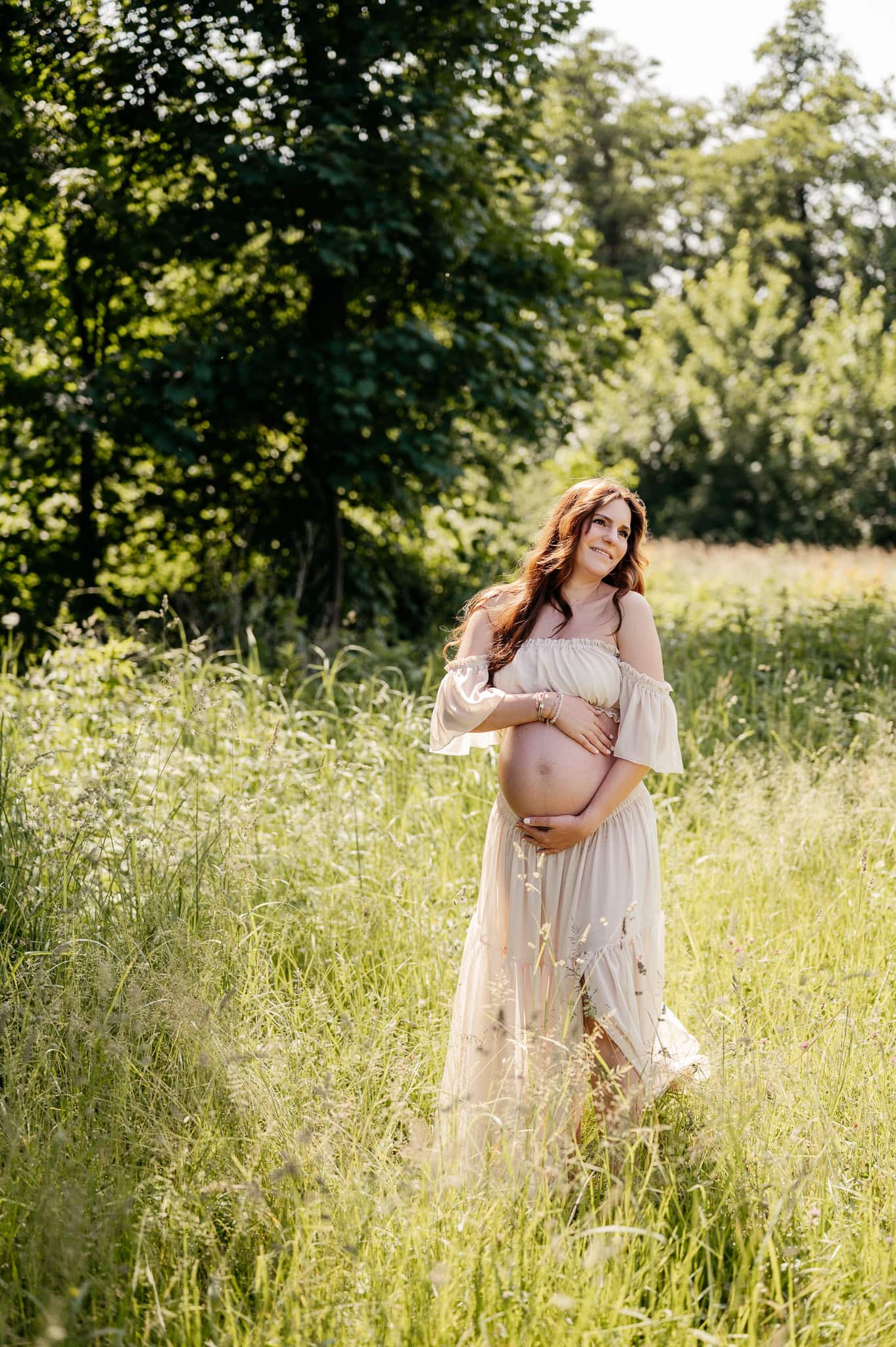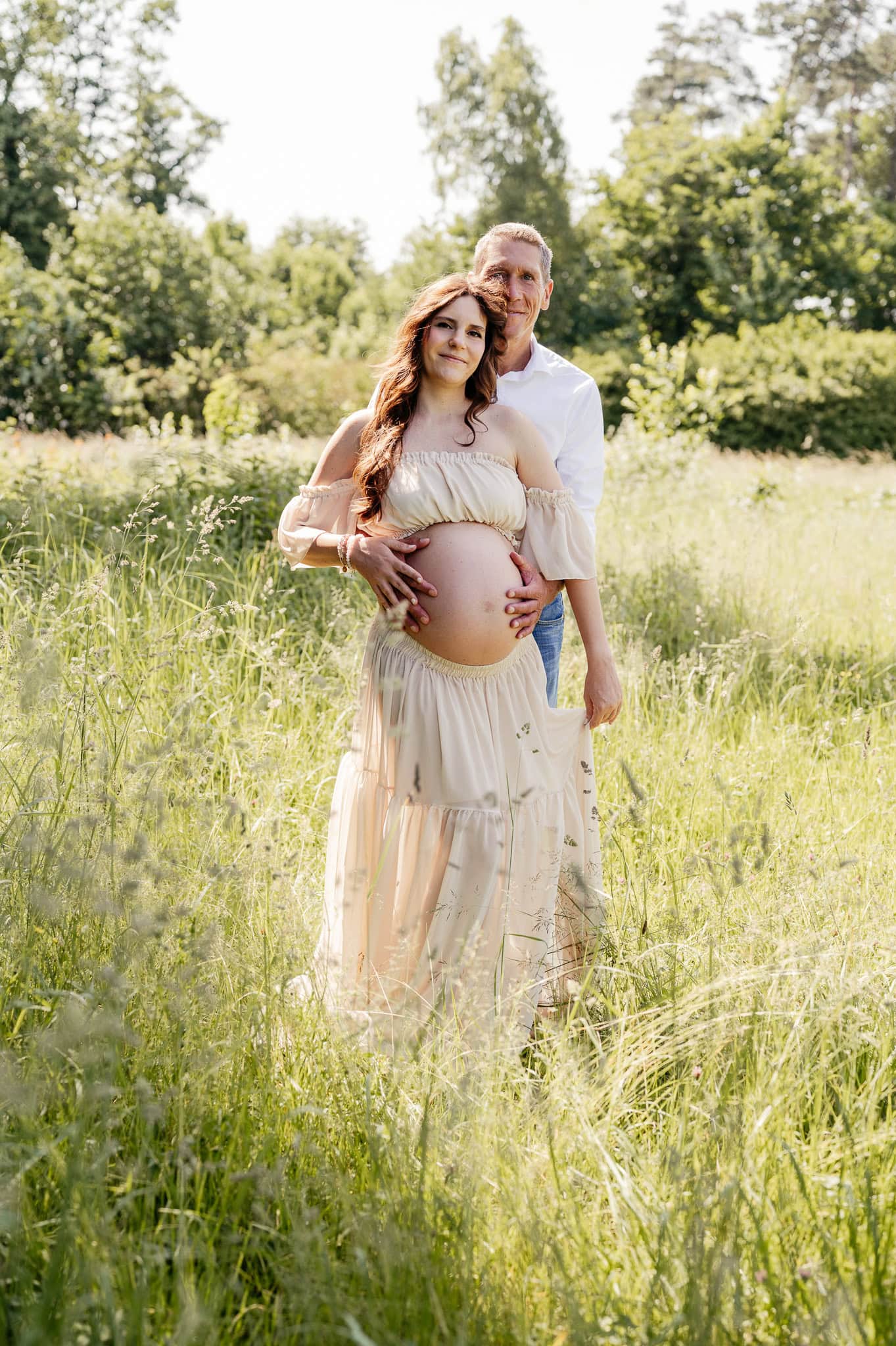 Für ein Schwangerschafts-Shooting in der Natur braucht es übrigens nicht viel. Bequeme Kleidung, in der Ihr Euch wohlfühlt. Ruhige Farben statt auffälliger Muster. Und vor allem: Zeit. Kein Stress, kein Druck. Den passenden Ort wählen wir gemeinsam mit Euch – abgestimmt auf Licht, Jahreszeit und Eure Wünsche. Auch kleine Wetterwechsel dürfen passieren. Oft machen genau sie die Bilder besonders.