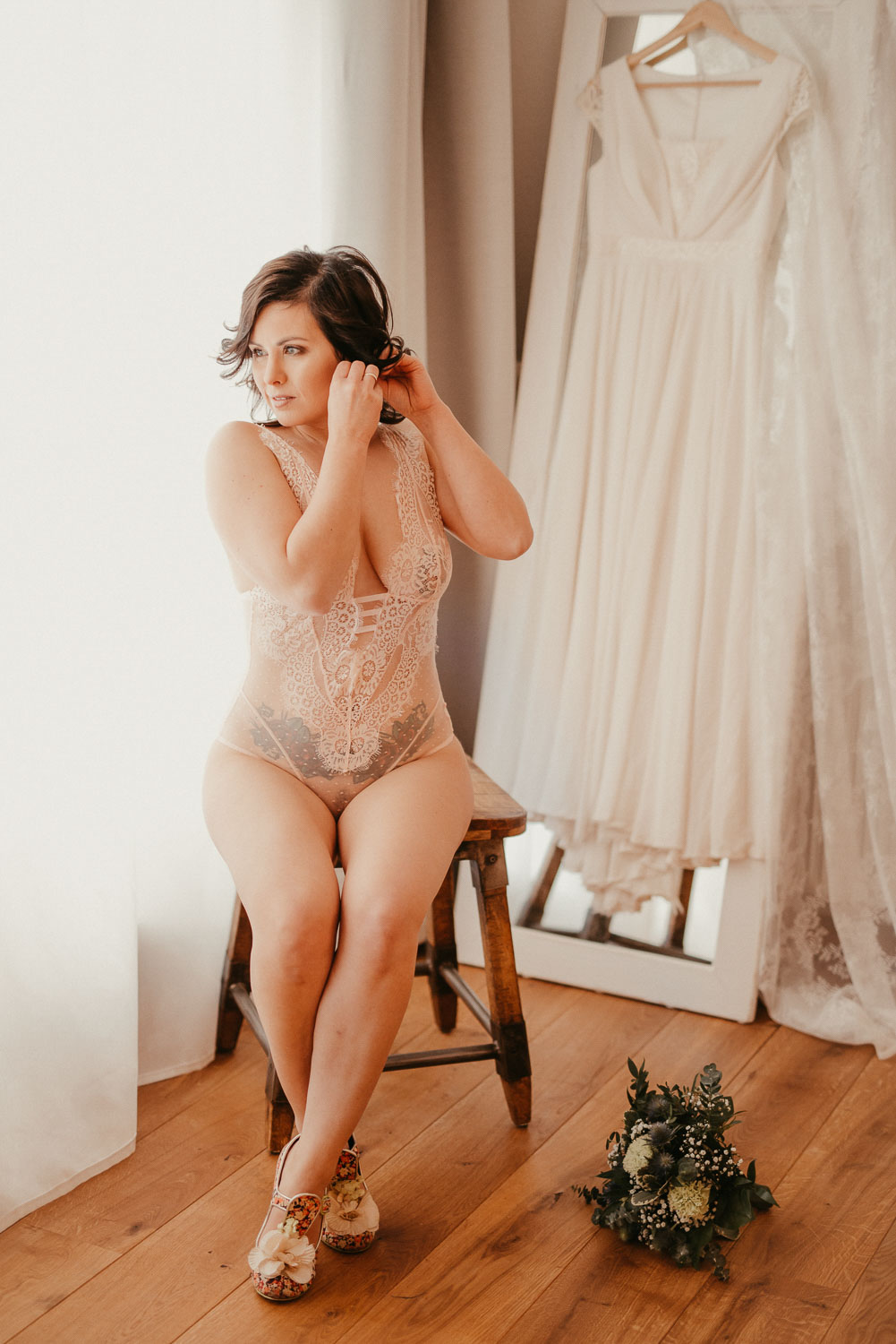 Für uns bedeutet Boudoir-Fotografie noch viel mehr – wir möchten die Sinnlichkeit der Frauen zeigen, egal ob mit viel Haut oder wenig. Sie müssen nicht unbedingt nackt sein, wie bei der „Aktfotografie“. Uns geht es vor allem um den Menschen, den wir gerade fotografieren. Wir möchten ihm ein gutes Gefühl geben und all seine Vorzüge zum Ausdruck bringen. Das muss nicht unbedingt nur mit Dessous sein, das kann auch ein kuscheliger Pullover mit dicken Kuschelsocken sein. Wir selbst sind Frauen und kennen alle „Problemzonen“, die es gibt – selbst die schlankesten und „schönsten“ Frauen erfinden neue Probleme, wo doch gar keine sind. Haben wir recht?