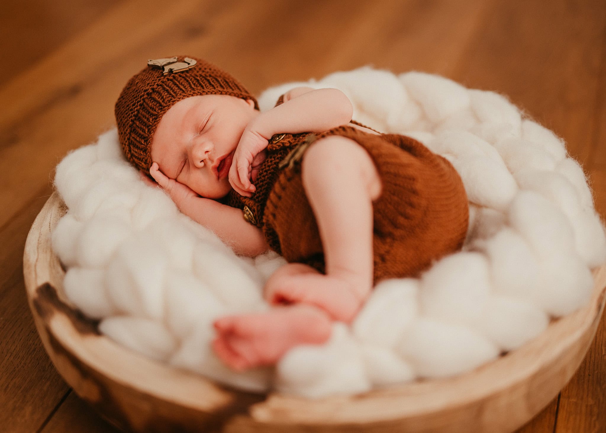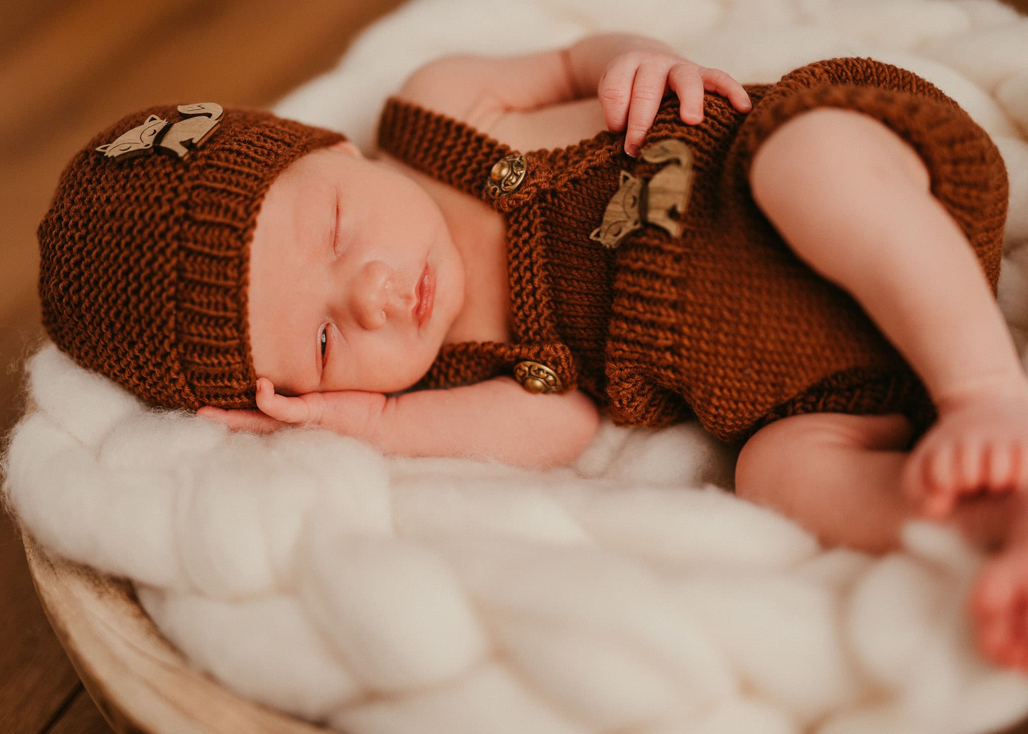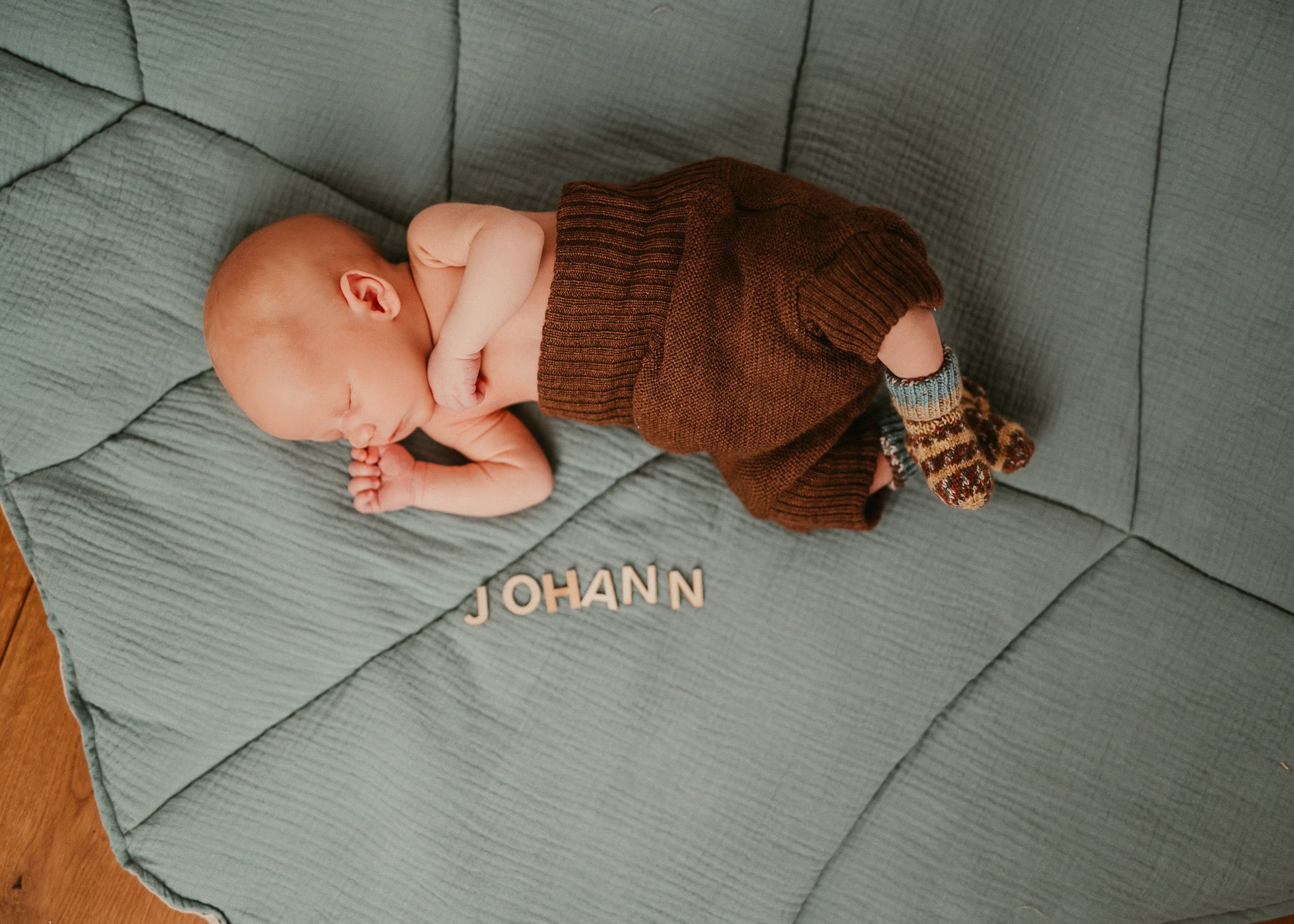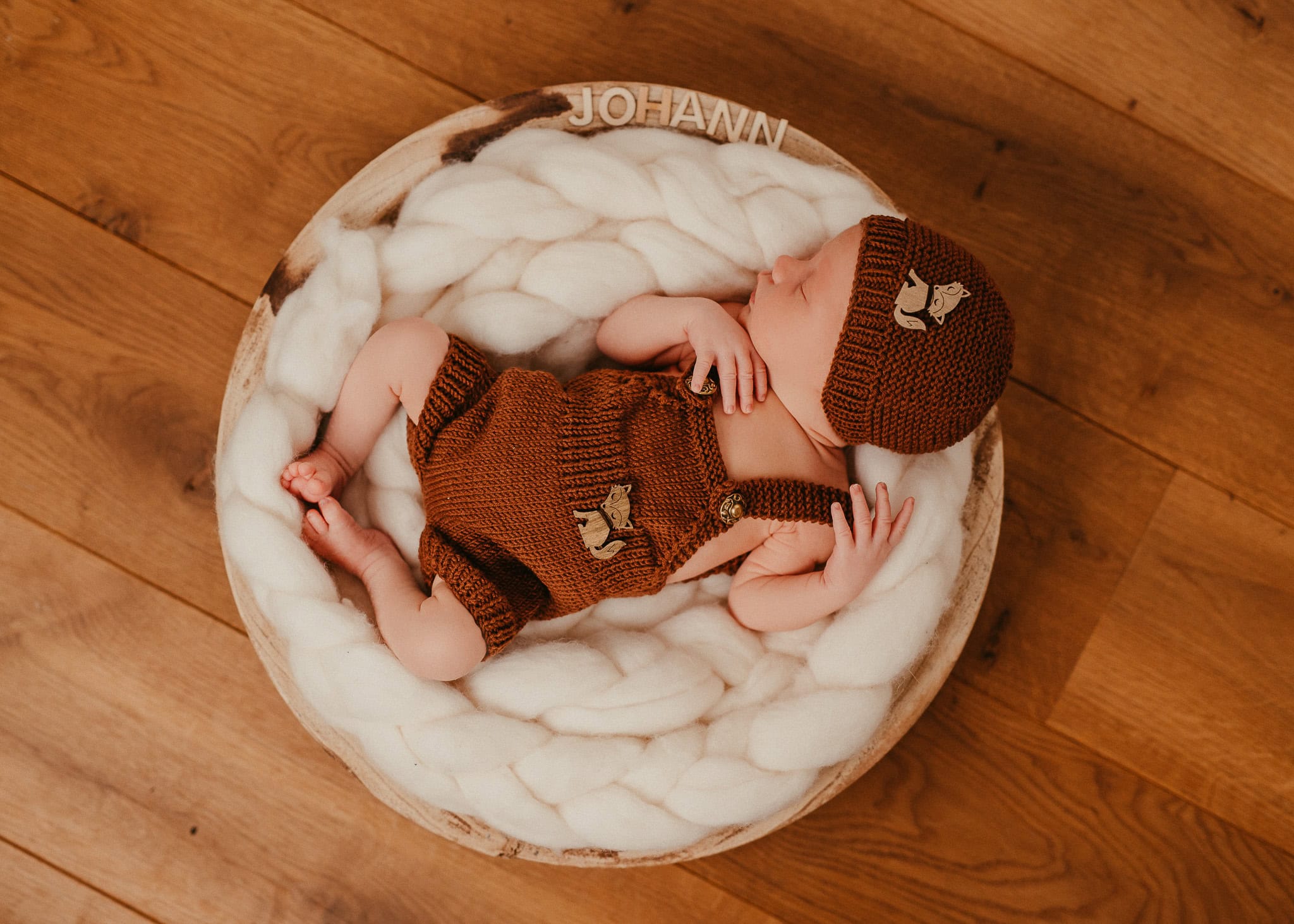 Was bitte ist das für ein heißes Outfit? Selbstgestrickt von Johanns Tante. Wenn das mal nicht ein großartiges Geschenk zur Geburt des Kleinen war. Sicherlich viel Arbeit und Mühe, die sich aber gelohnt haben. Wie findet Ihr diese kleinen Holzfüchse? Total süß …, oder? Es steckt so viel Liebe drin.