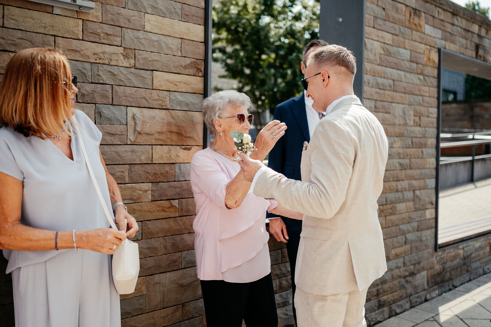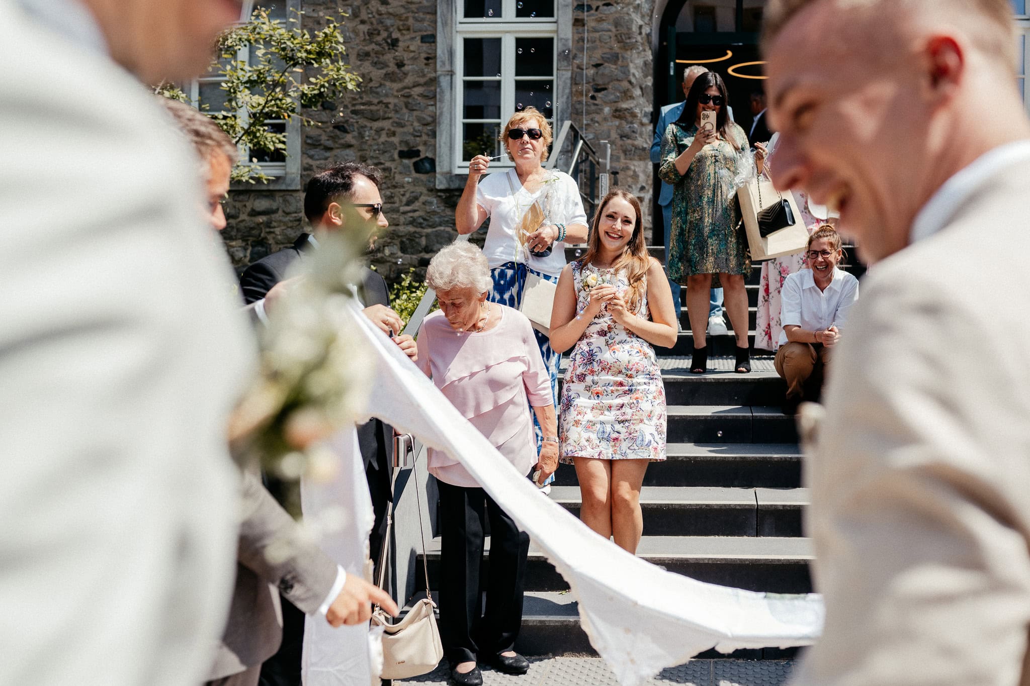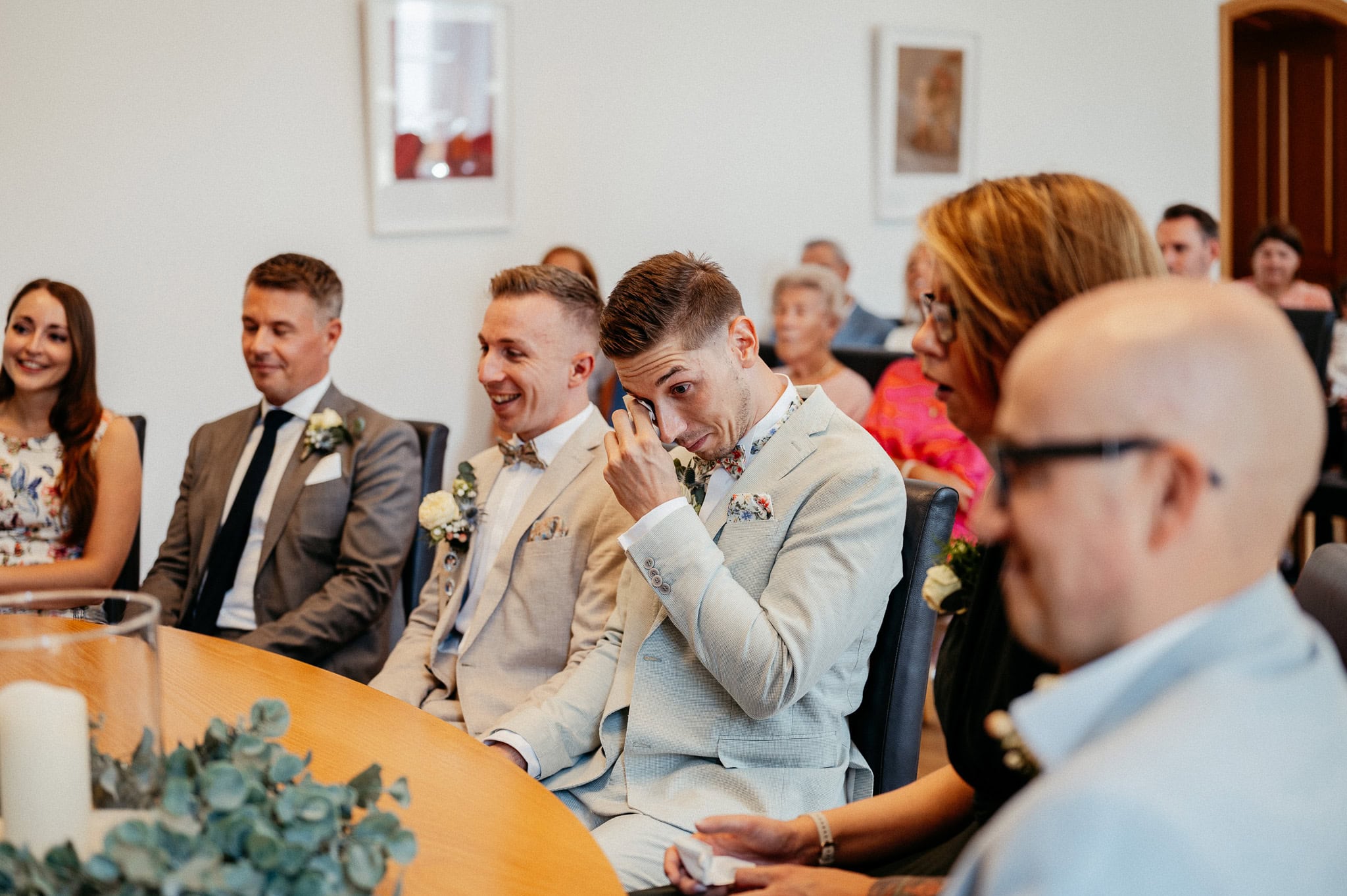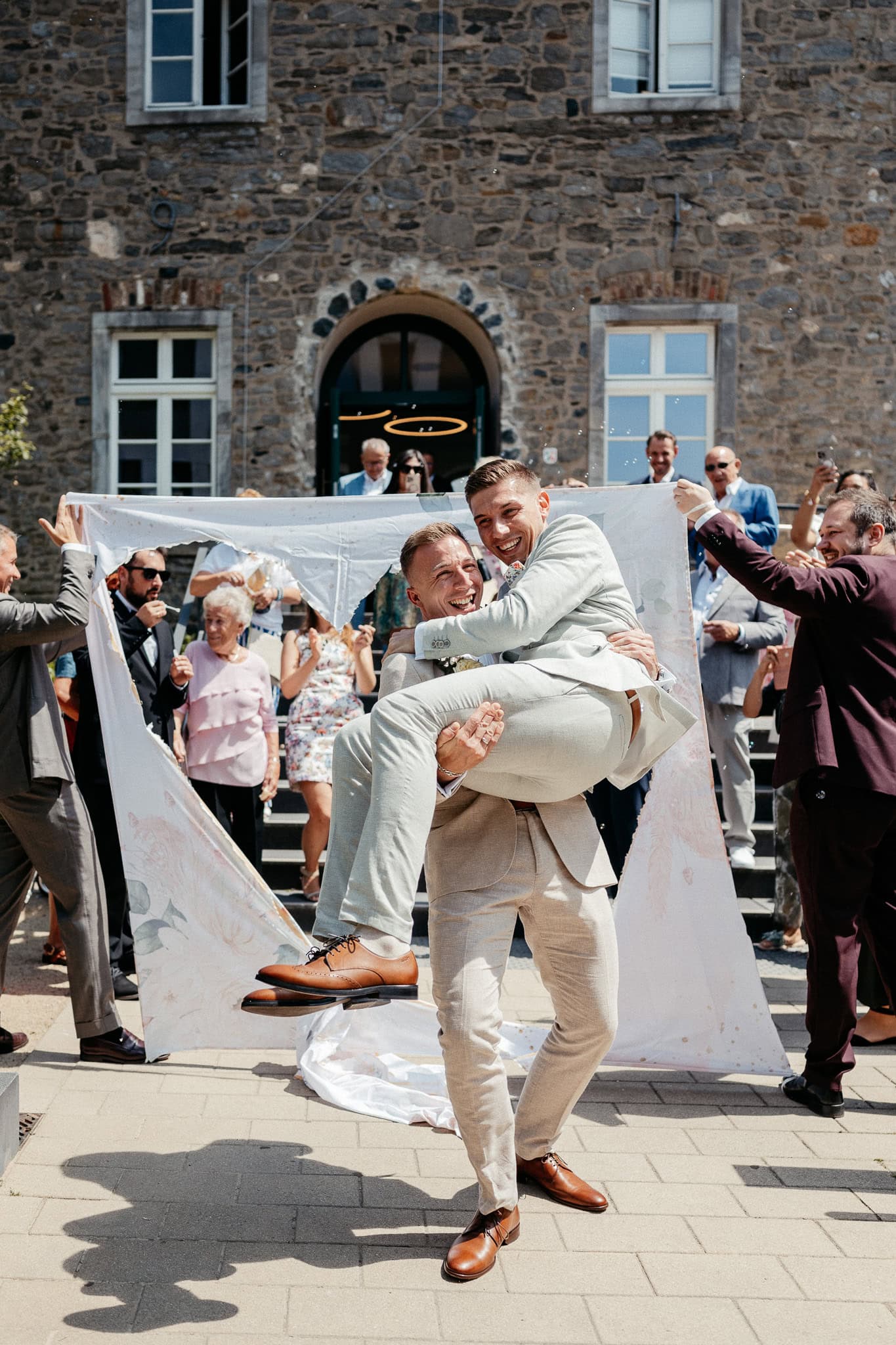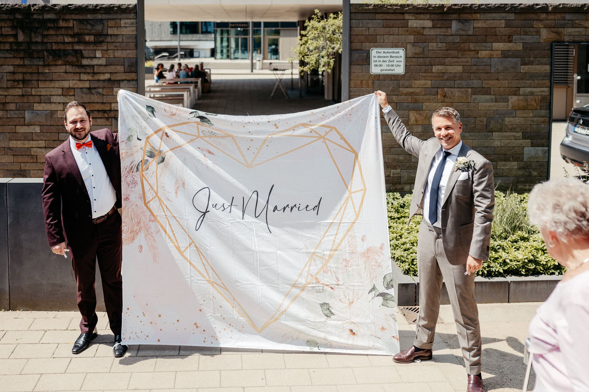 Die standesamtliche Trauung von Patrick und Kevin fand im historischen Standesamt im Minoritenkloster Ratingen statt. Schon beim Eintreffen der Gäste lag schon so viel Freude, Aufregung und Liebe in der Luft. Für uns, als Hochzeitsfotografen einer LGBTQ-Hochzeit war es ein Fest der Gefühle und wir haben uns gefühlt nur im Kreis mit der Kamera gedreht.