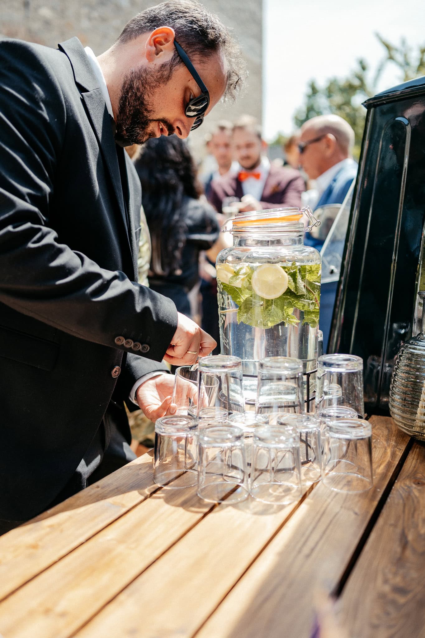 Ein kleines Highlight: Vor dem Kloster wartete nach der Trauung eine süße kleine Ape, die den Empfang übernahm und für ein zuckersüße Überraschung sorgte. Diese persönliche Note passte perfekt zu den beiden.