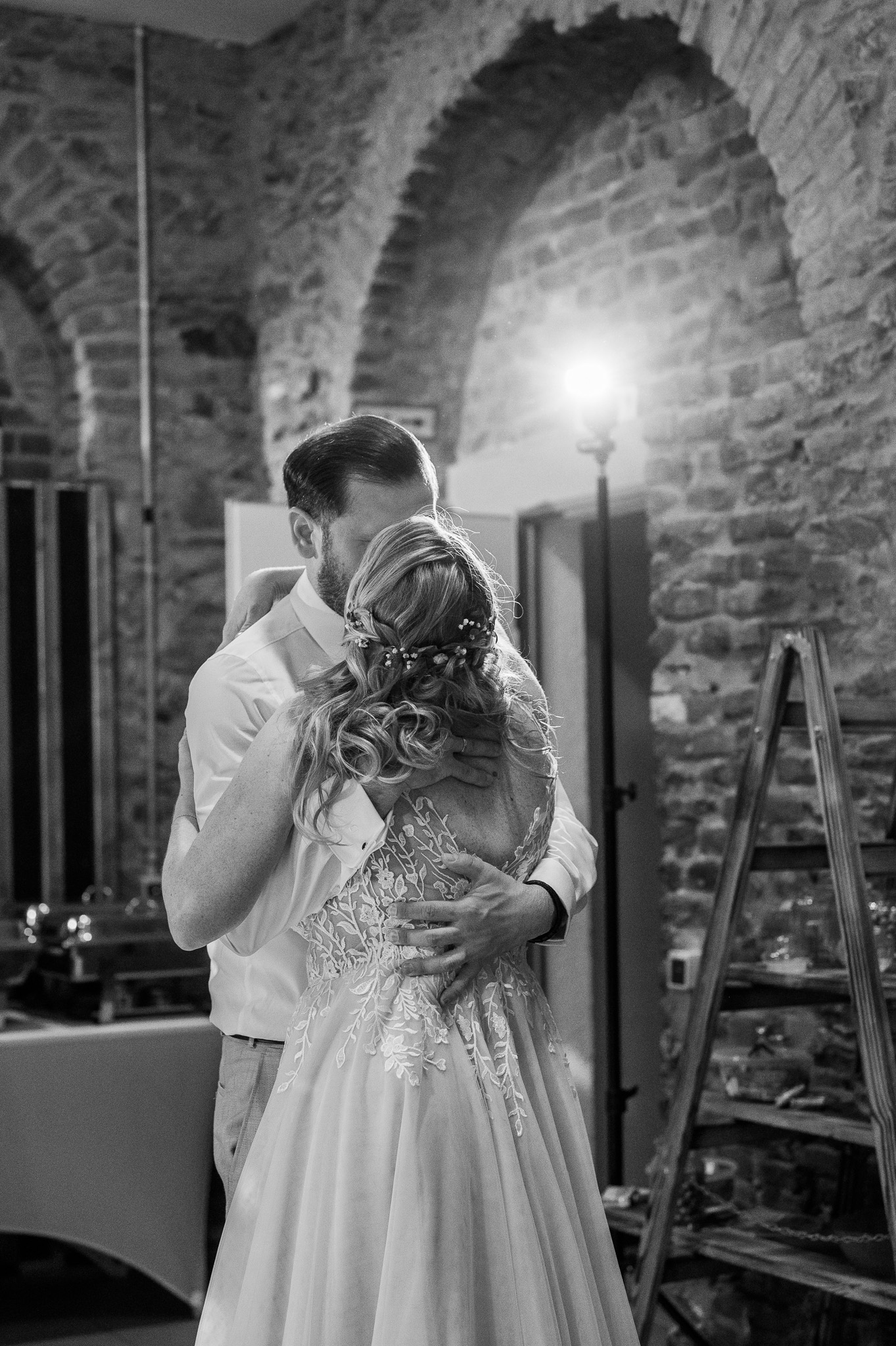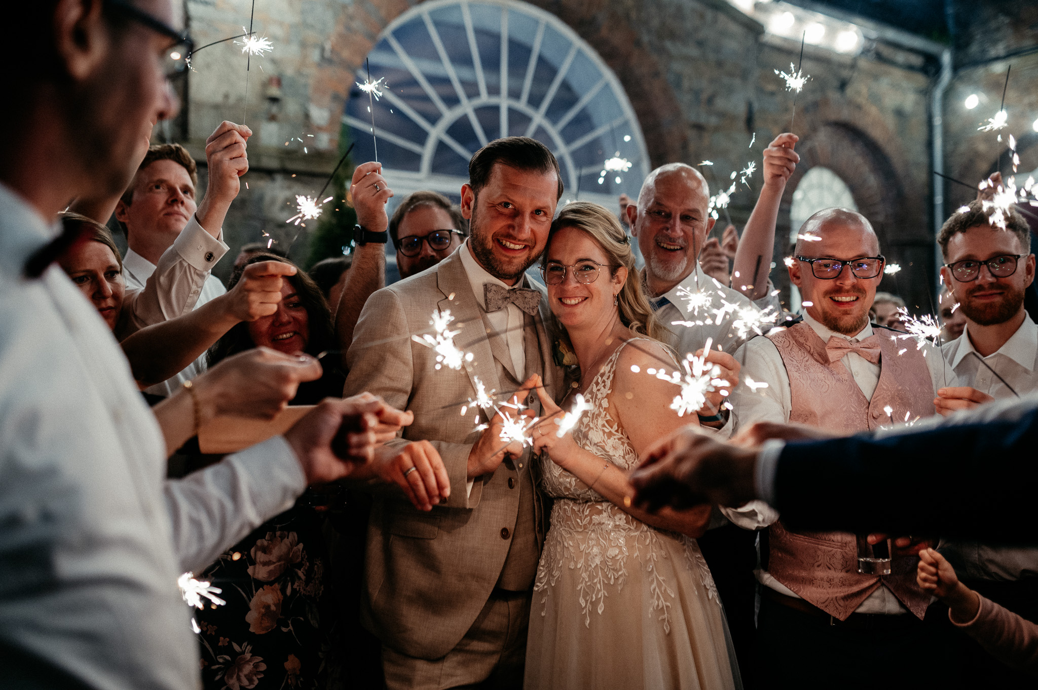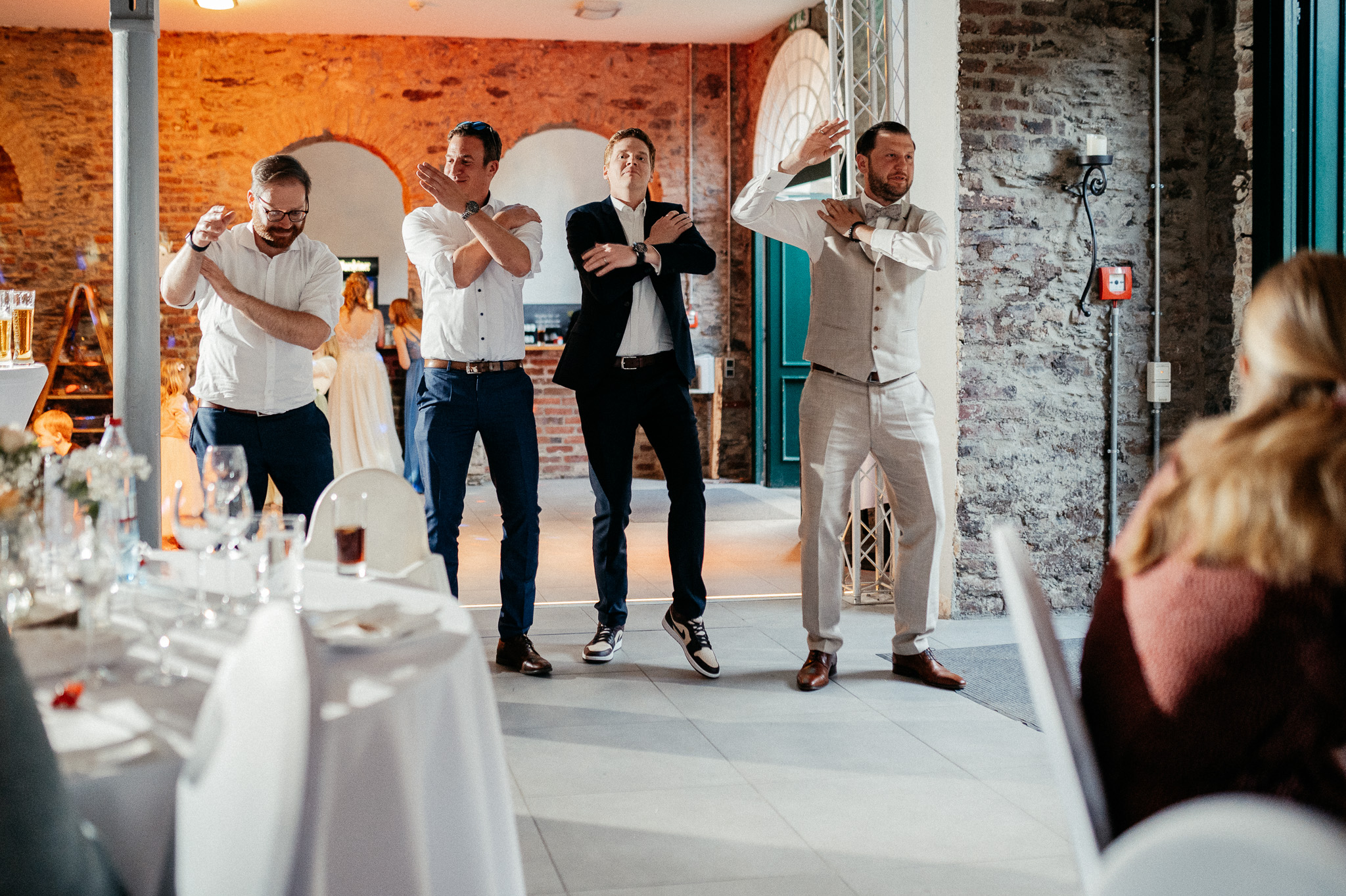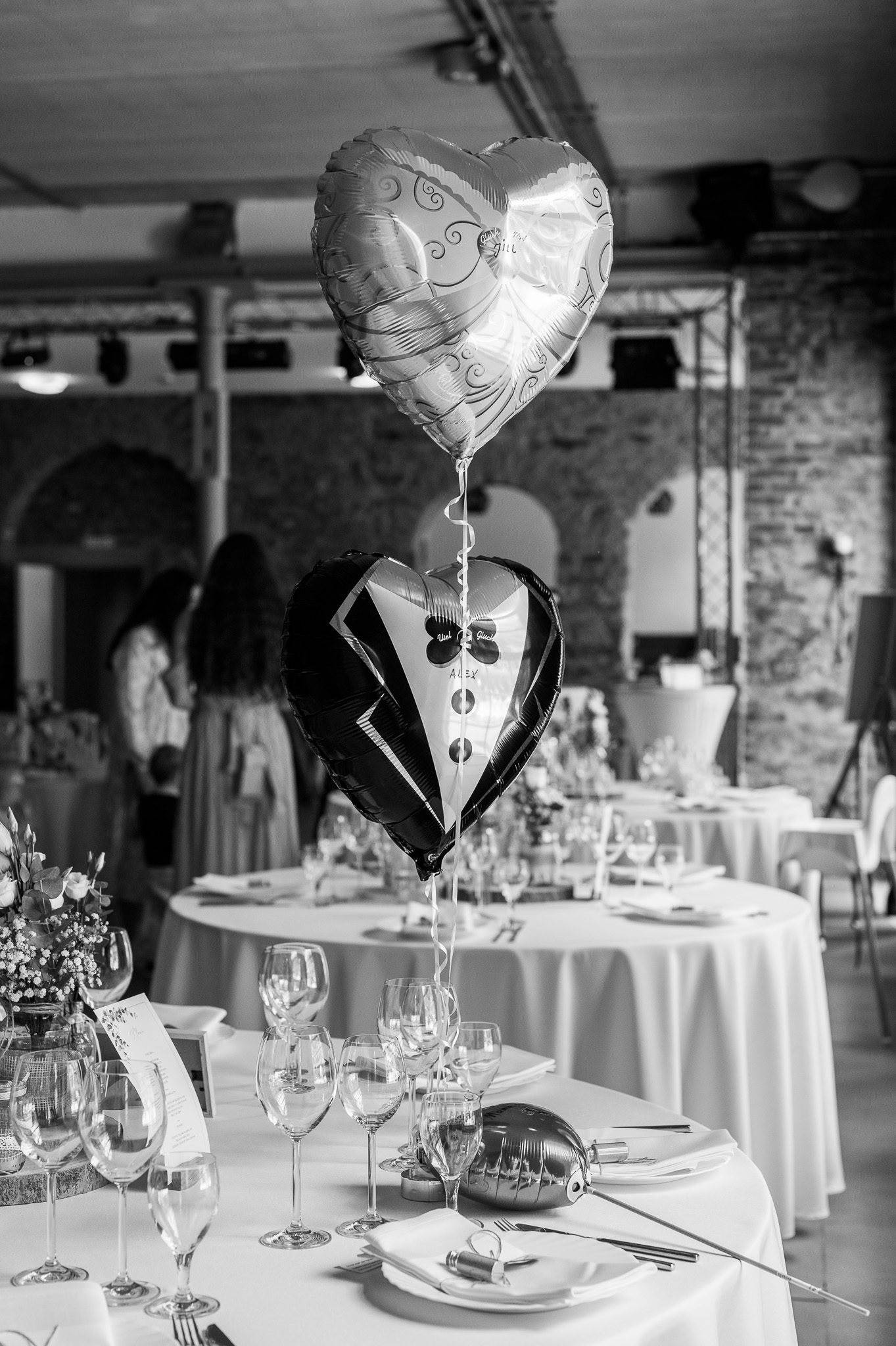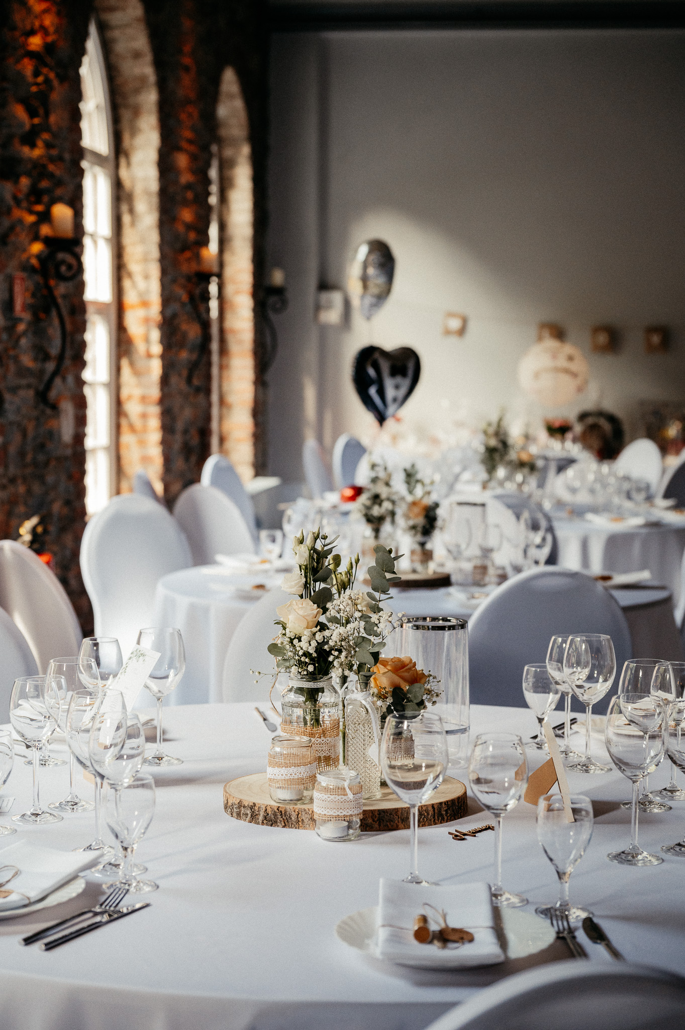 Nach dem Fotoshooting ging es zur Feierlocation – der Alten Schlossfabrik. Diese stilvolle und charmante Location war die perfekte Ergänzung zu dem Tag. Die Mischung aus historischem Flair und Moderne hat nicht nur das Hochzeitspaar, sondern auch alle Gäste begeistert. Besonders die liebevolle Dekoration und die ausgelassene Stimmung machten diesen Abend zu etwas ganz Besonderem.