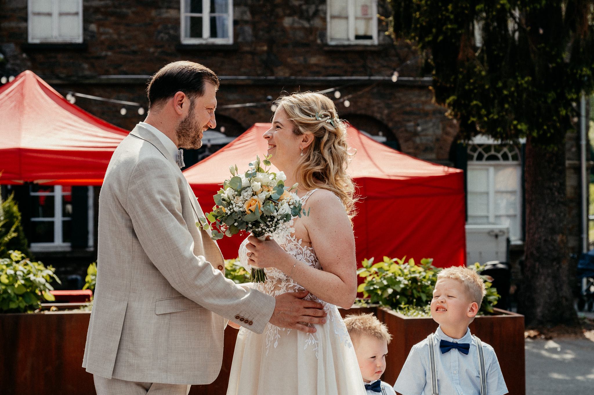 Schloss Burg in Solingen bot uns eine einmalige Atmosphäre. Mit Ihren verwinkelten Gassen, den alten Mauern und dem beeindruckenden Ausblick ins Tal ist sie ein Ort, der wie geschaffen ist für emotionale und authentische Hochzeitsfotos. Ich liebe es, die natürliche Schönheit einer solchen Umgebung mit den echten Momenten eines Hochzeitspaars zu verbinden.