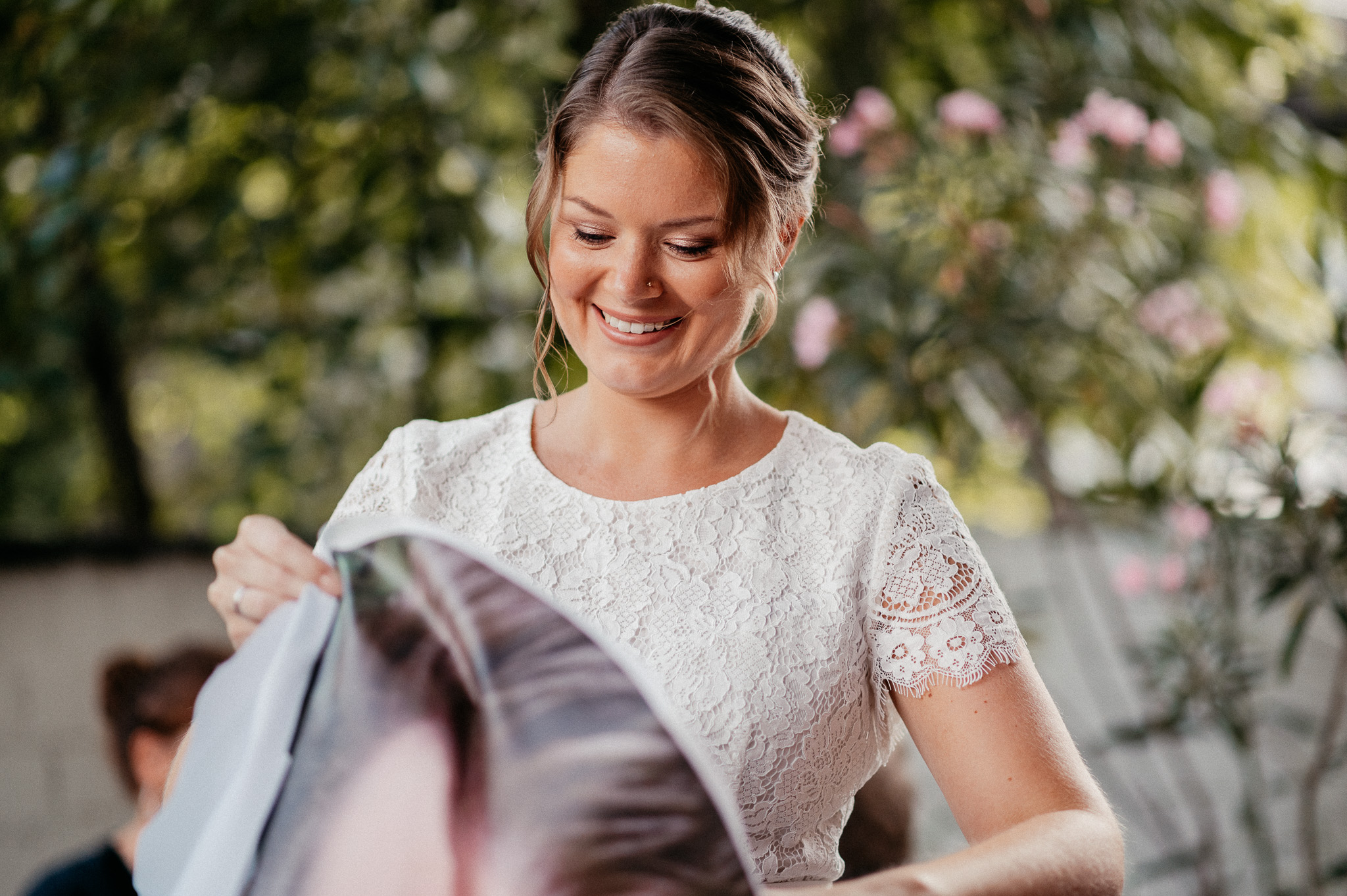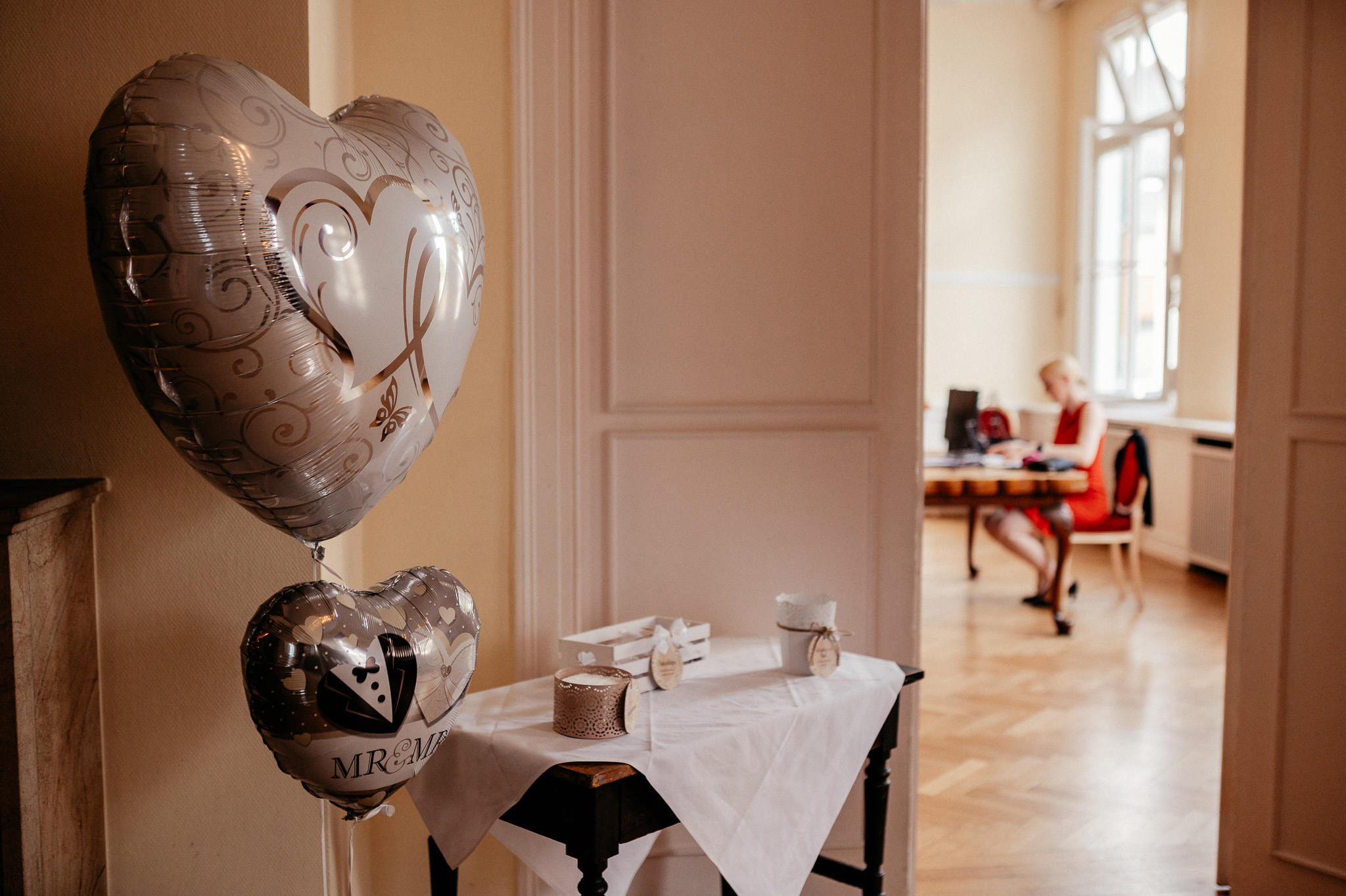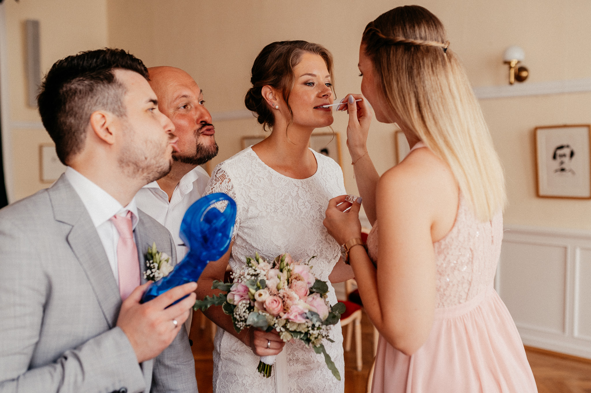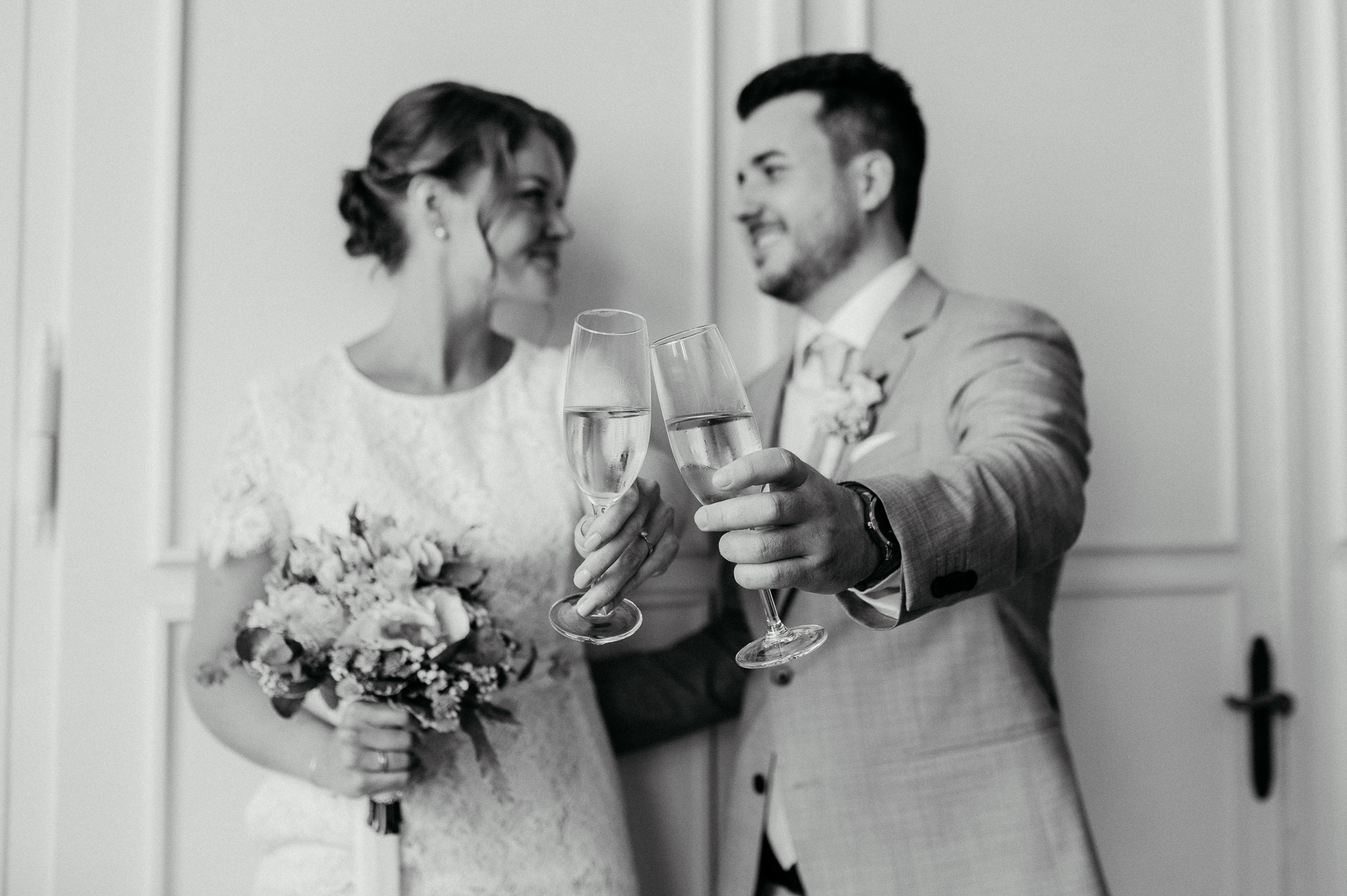 Eigentlich hatten die beiden einen anderen Plan. Aufgrund der Personenanzahlbegrenzung im Standesamt entschieden sich die beiden für die schöne Location in der Kulturvilla. Dort hatten Sie die Möglichkeit, den engsten Kreis der Familie mitzunehmen, da die Personenzahl zu dem Zeitpunkt bei ca. 20 Personen lag. Die Location bietet nicht nur die Option, sich dort trauen zu lassen, sondern auch die Feier direkt vor Ort auszurichten. Auf der Website findet Ihr alle Informationen. Eine wunderschöne Outdoor-Kulisse für den Sektempfang bietet direkt vor der Tür der schöne Hofgarten.