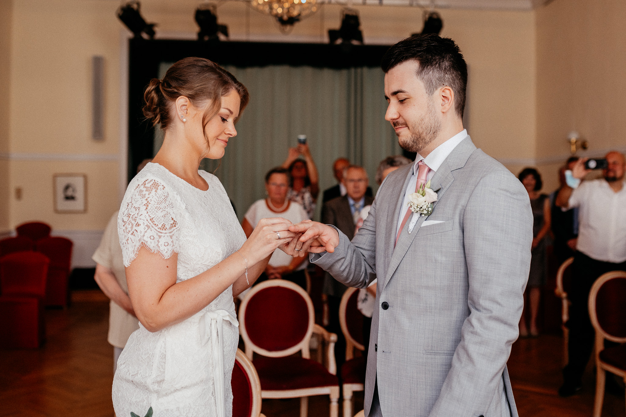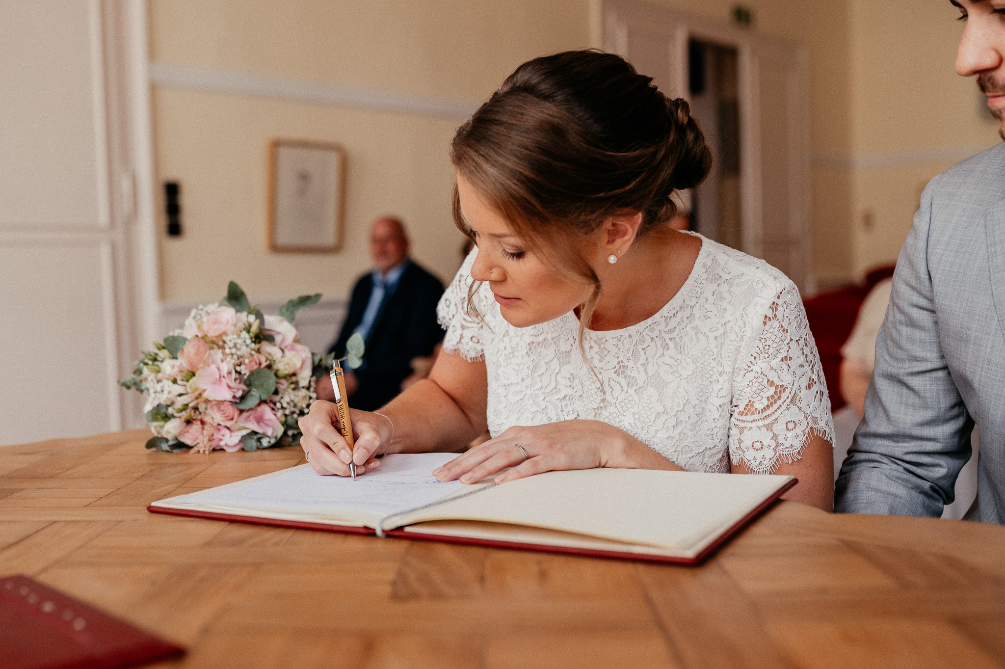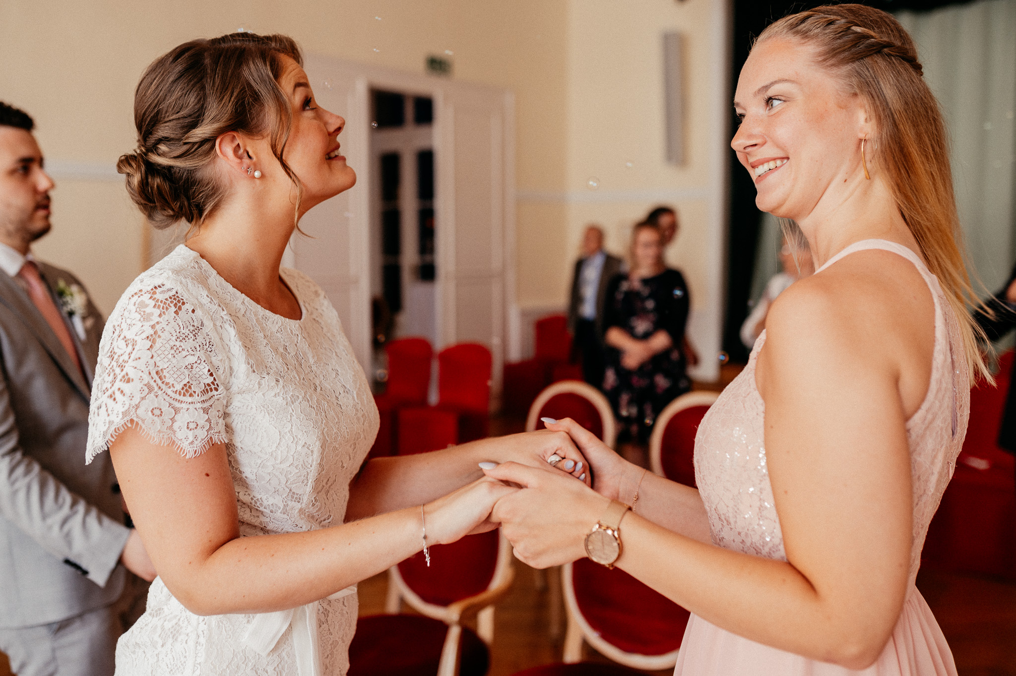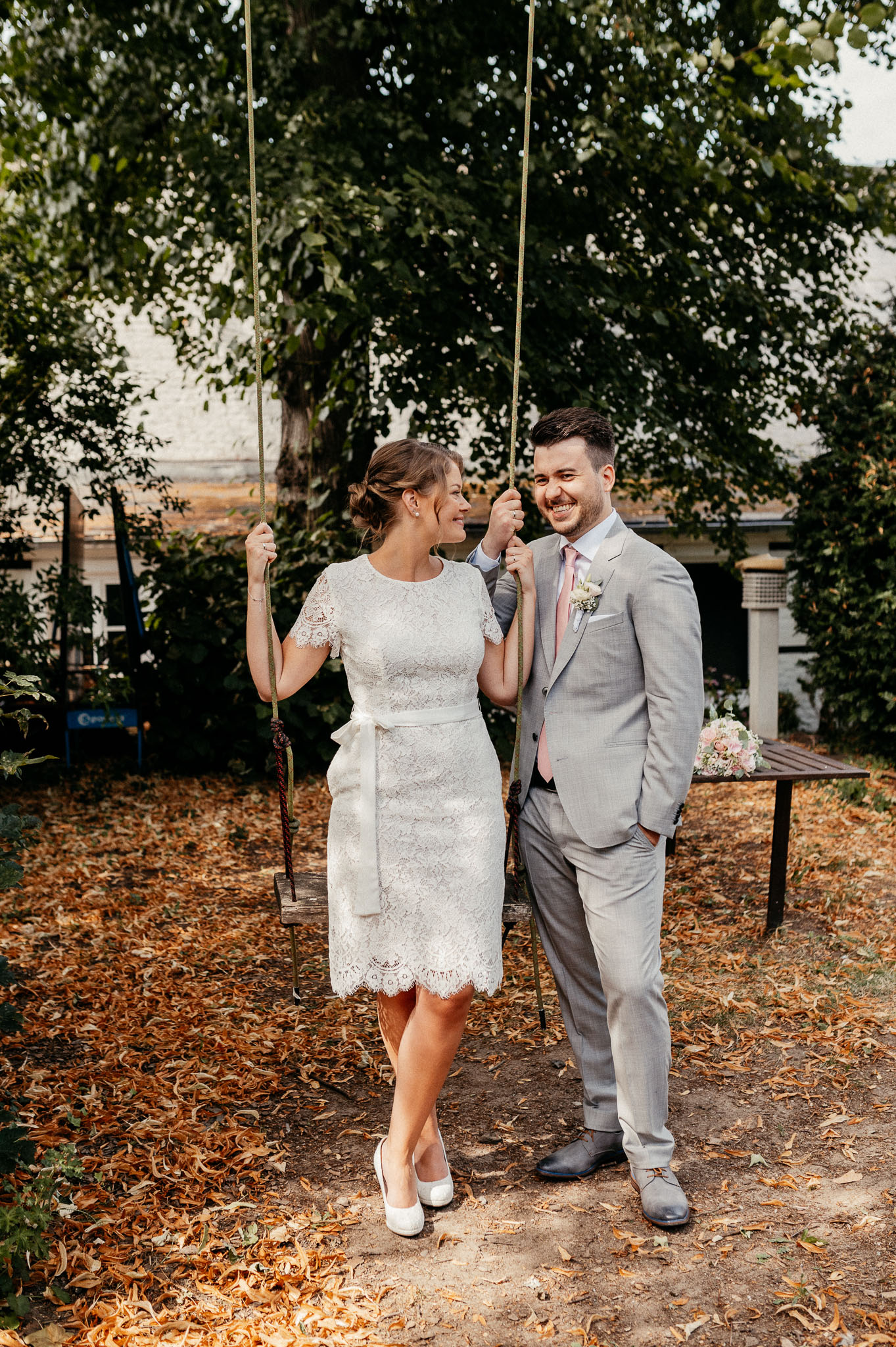 Eigentlich hatten die beiden einen anderen Plan. Aufgrund der Personenanzahlbegrenzung im Standesamt entschieden sich die beiden für die schöne Location in der Kulturvilla. Dort hatten Sie die Möglichkeit, den engsten Kreis der Familie mitzunehmen, da die Personenzahl zu dem Zeitpunkt bei ca. 20 Personen lag. Die Location bietet nicht nur die Option, sich dort trauen zu lassen, sondern auch die Feier direkt vor Ort auszurichten. Auf der Website findet Ihr alle Informationen. Eine wunderschöne Outdoor-Kulisse für den Sektempfang bietet direkt vor der Tür der schöne Hofgarten.