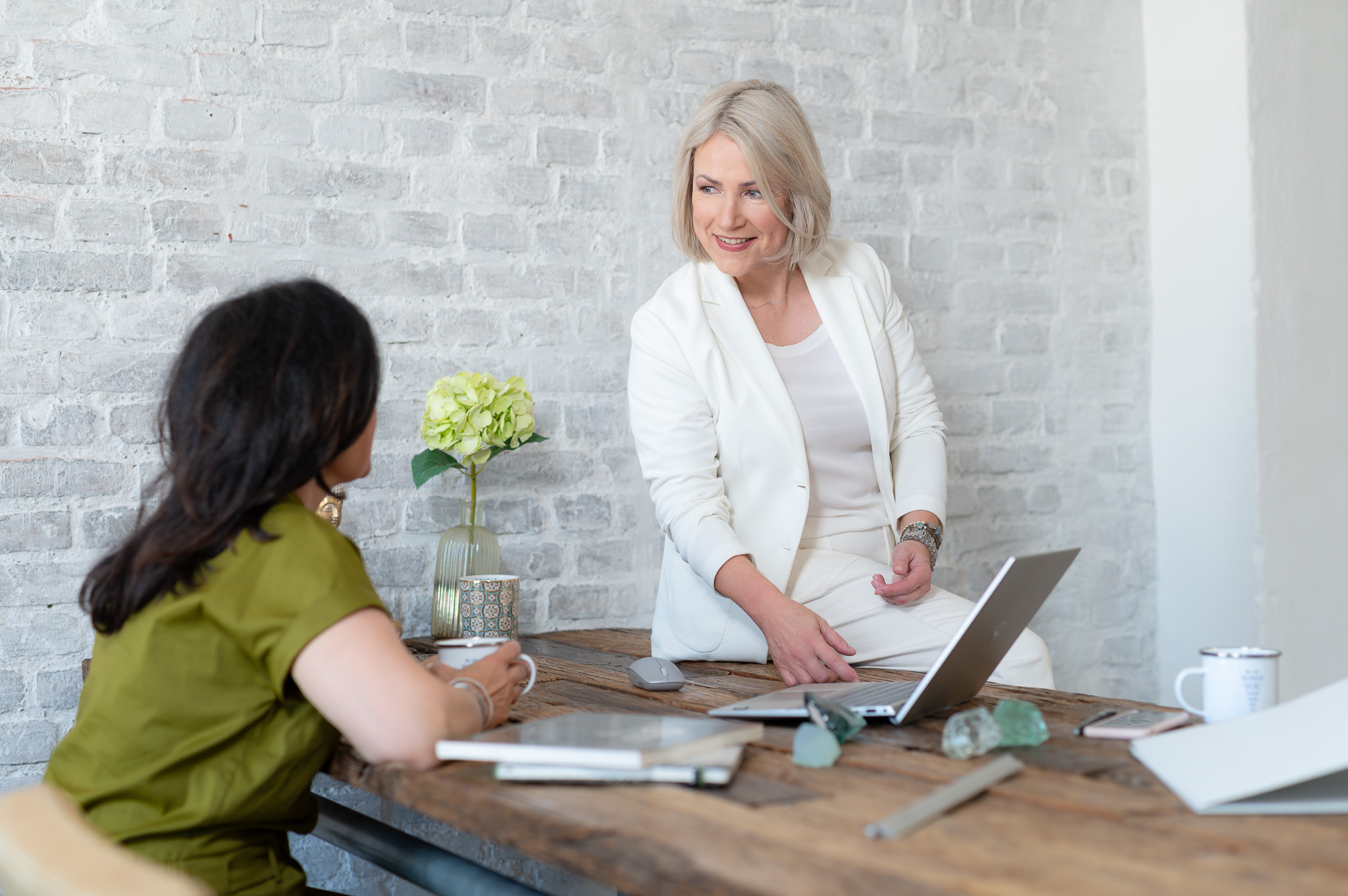 Mit unseren individuellen Angeboten im Bereich Karriere- und Businessfotografie schnüren wir Dir das perfekte Rundumpaket, das zu Dir und Deinem Unternehmen passt. Mit der wunderbaren Maike organisierten wir ein Business-Shooting in einem Düsseldorfer Mietstudio, da Ihre Vorstellungen in unserem eigenen Studio nicht umsetzbar waren. Maike hat sich auf das Coachen von Frauen in Unternehmen spezialisiert. Bei ihrer Arbeit geht es um selbstbewusstes Auftreten, Kommunikation und das Thema Persönlichkeitsentwicklung. Uns war es wichtig, diese Aspekte in den Bildern widerzuspiegeln und durch helle Farben, Licht und dezente Accessoires Maikes positive Ausstrahlung und ihre lockere Art widerzuspiegeln.