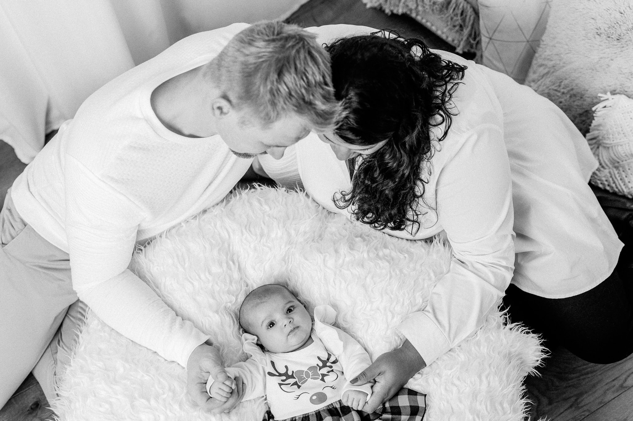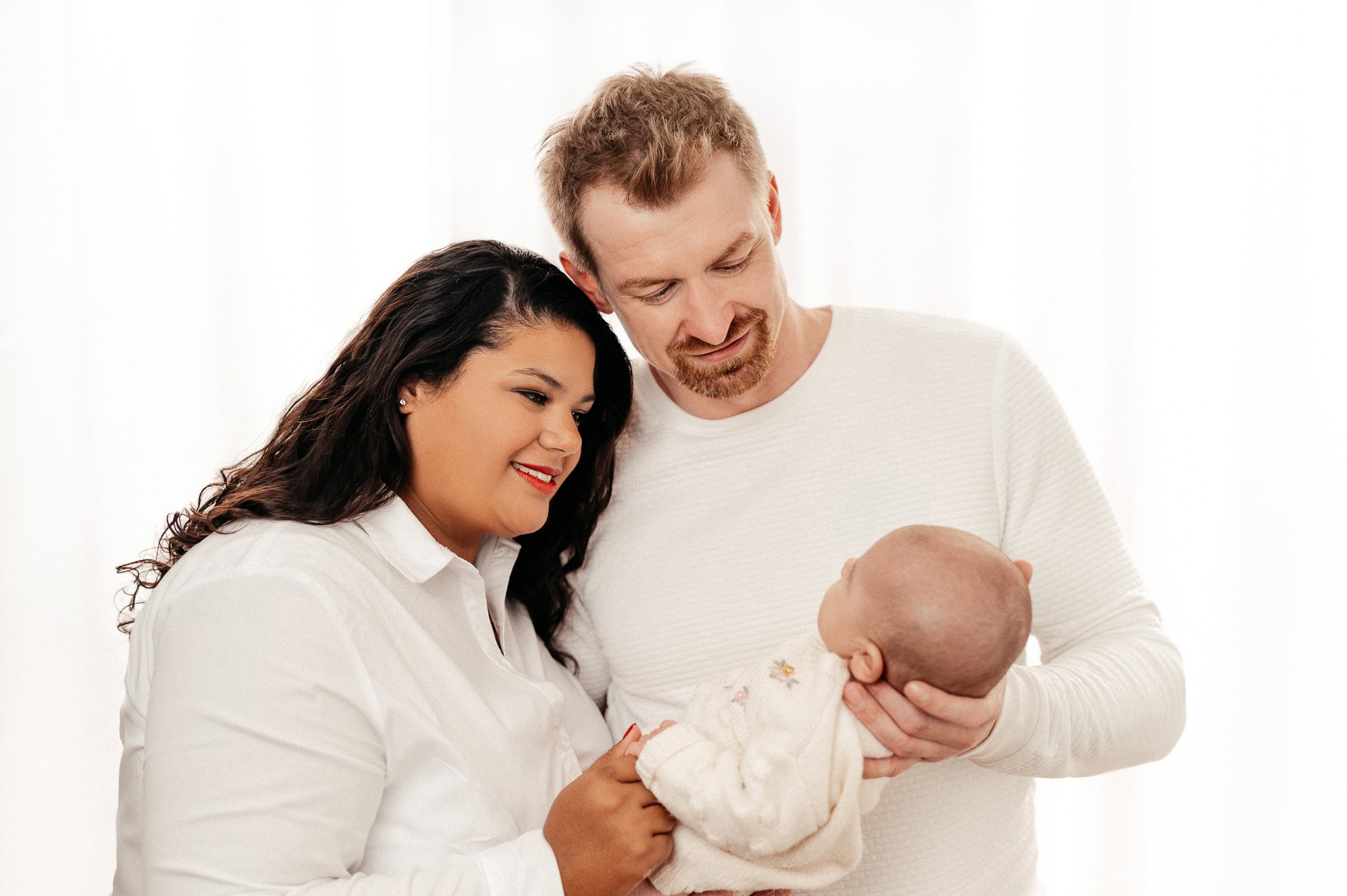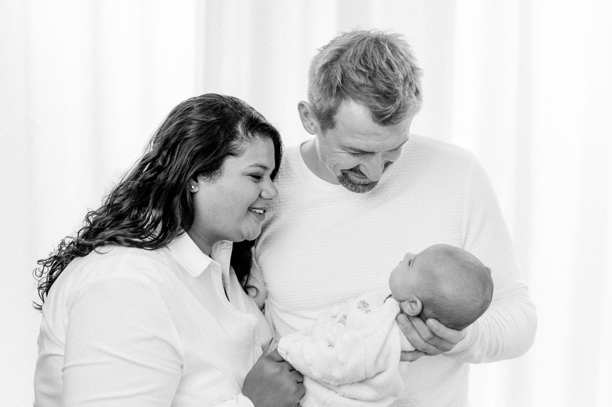 Neugeborenen-Shooting – kleine Ronja Räubertochter – Wie mögt Ihr unsere Bilder eigentlich am liebsten? Ganz clean und reduziert oder eher verspielt? Wir persönlich sind ja oft überzeugt, weniger ist mehr und beschränken uns gern auf das Wesentliche – auf Euch! Ein weißer oder schwarzer Fotohintergrund, unsere cremefarbene Wand, einfarbige und dezente Farben bei der Kleidung und die Komposition ist perfekt.
