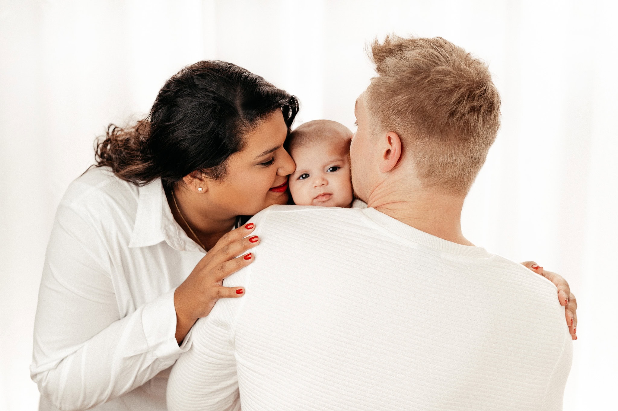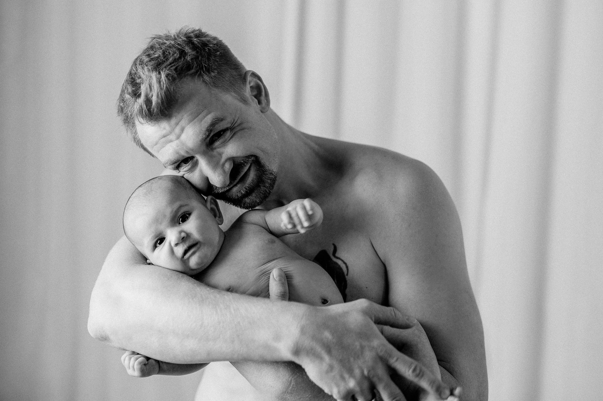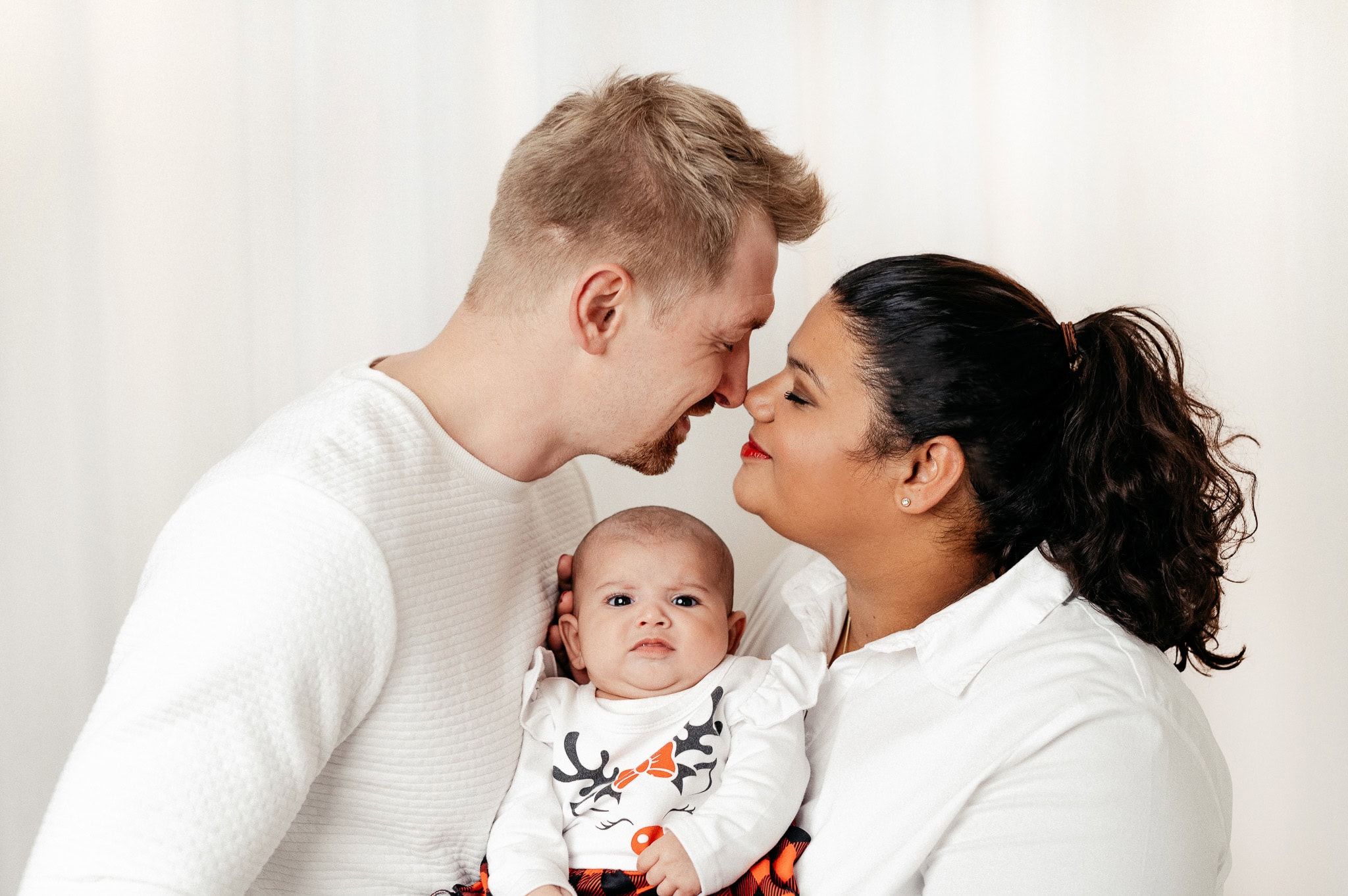 Neugeborenen-Shooting – kleine Ronja Räubertochter – Wie mögt Ihr unsere Bilder eigentlich am liebsten? Ganz clean und reduziert oder eher verspielt? Wir persönlich sind ja oft überzeugt, weniger ist mehr und beschränken uns gern auf das Wesentliche – auf Euch! Ein weißer oder schwarzer Fotohintergrund, unsere cremefarbene Wand, einfarbige und dezente Farben bei der Kleidung und die Komposition ist perfekt.