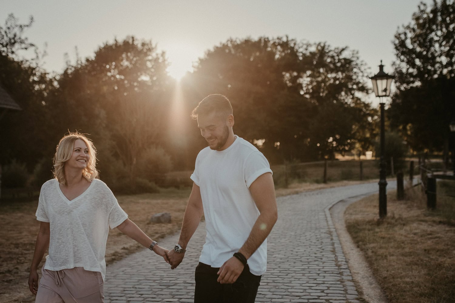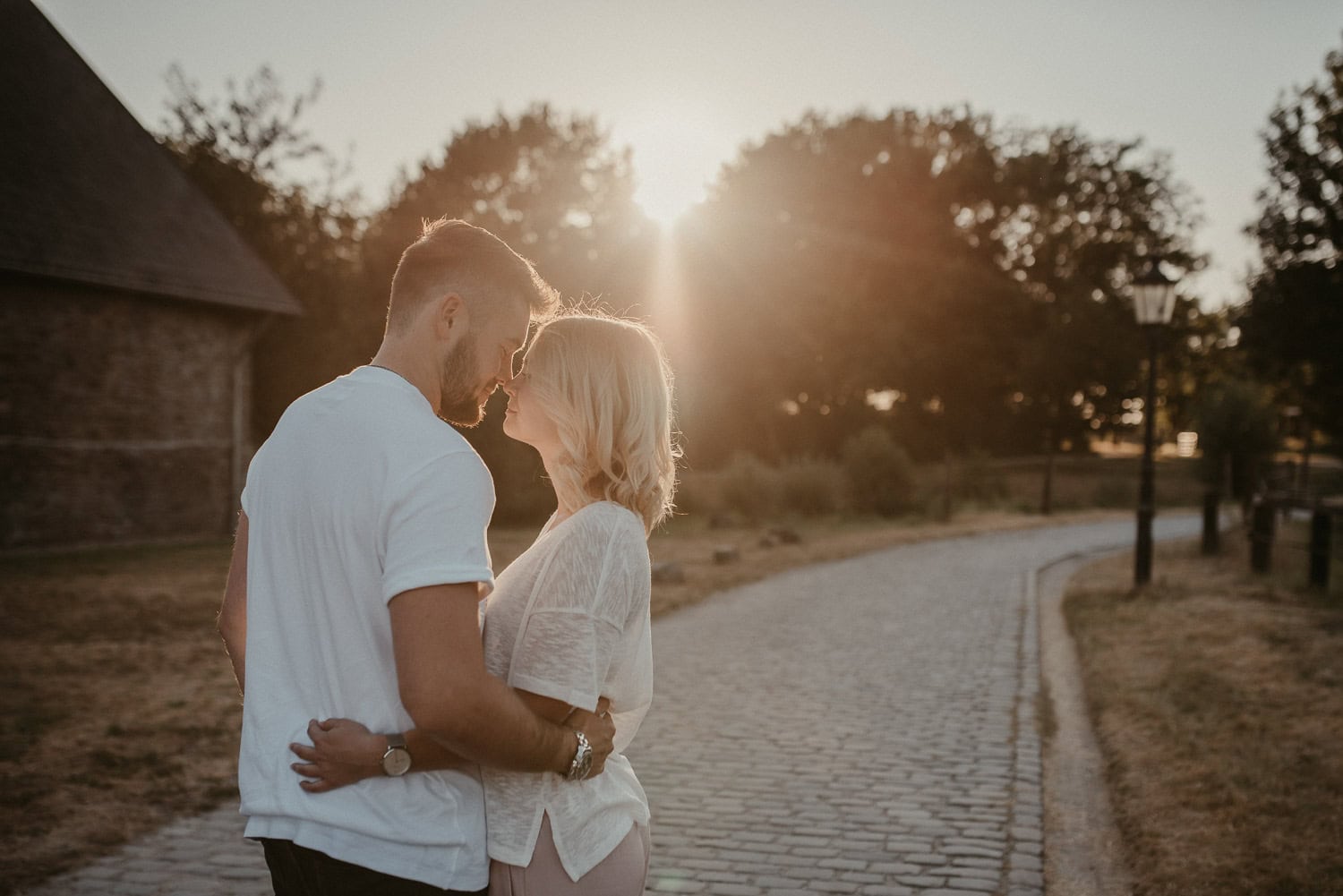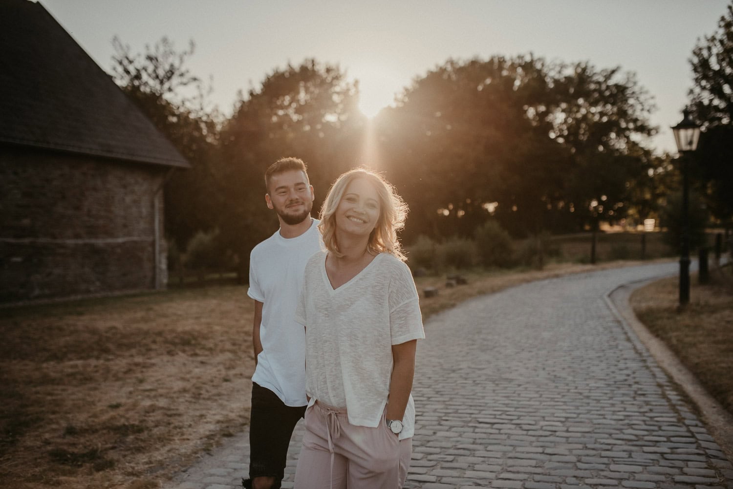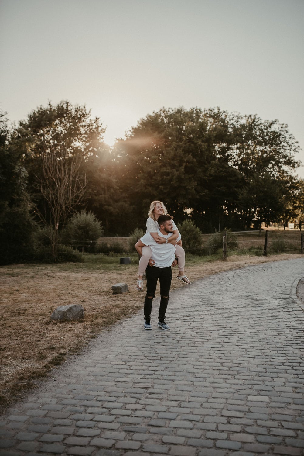 Paarshooting mit Anni und Björn in Ratingen – Wir hatten ein tolles Shooting an meiner Lieblings-Location am Haus zum Haus in Ratingen. Gefühlt fotografiere ich da immer. Es bietet sich einfach so gut an, denn vor Ort ist alles, was ein Fotografen-Herz begehrt – Steinmauer, Felder, Schotterwege, Wald und viel Grün drumherum. Wir hatten einfach absolutes Glück mit dem Wetter. Sonne pur!