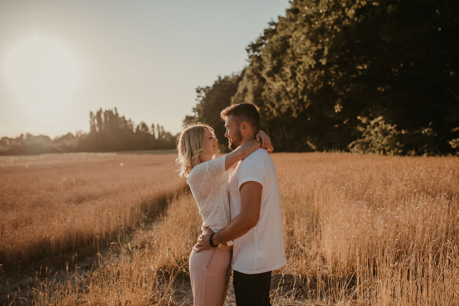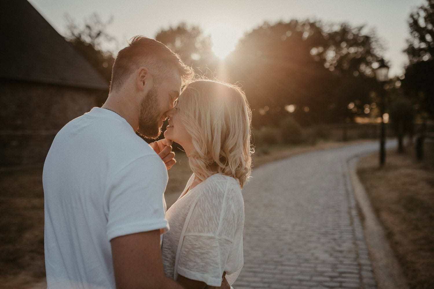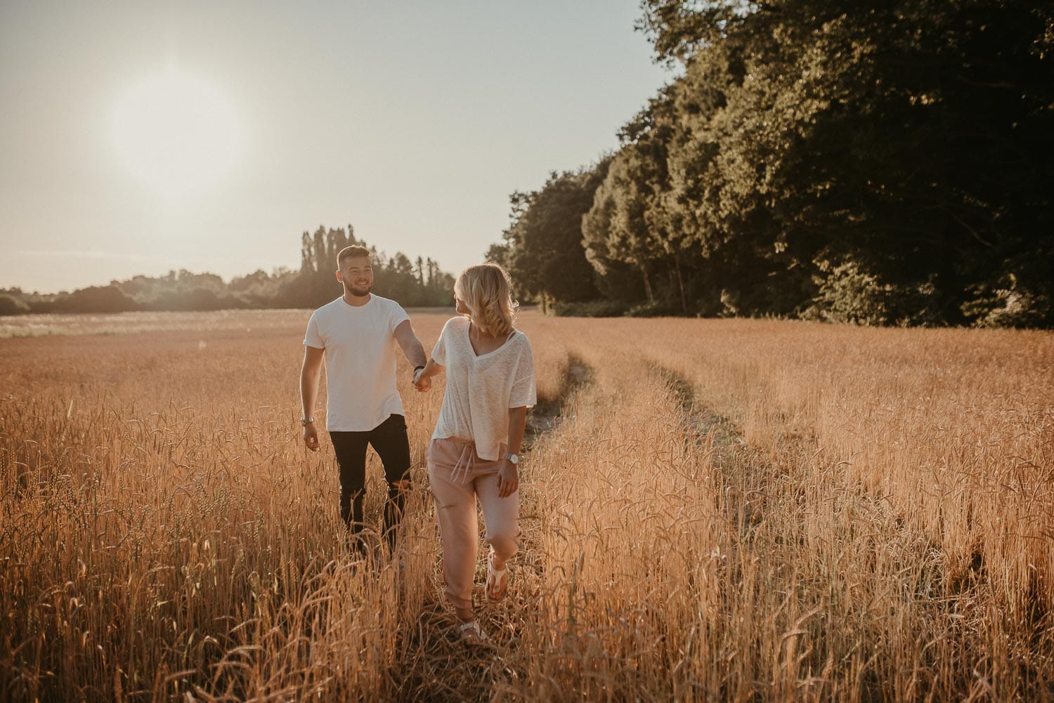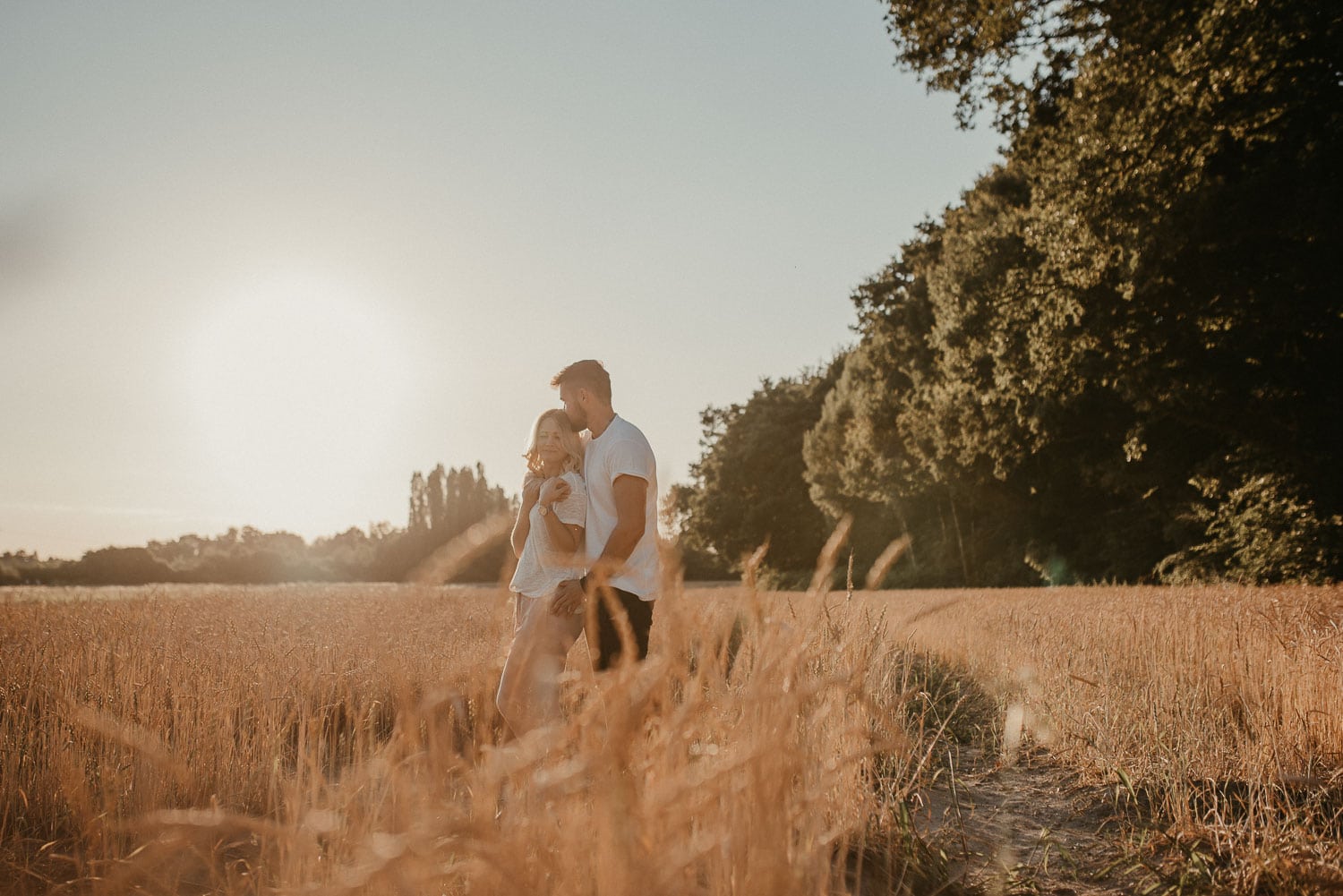 Paarshooting mit Anni und Björn in Ratingen – Wir hatten ein tolles Shooting an meiner Lieblings-Location am Haus zum Haus in Ratingen. Gefühlt fotografiere ich da immer. Es bietet sich einfach so gut an, denn vor Ort ist alles, was ein Fotografen-Herz begehrt – Steinmauer, Felder, Schotterwege, Wald und viel Grün drumherum. Wir hatten einfach absolutes Glück mit dem Wetter. Sonne pur!