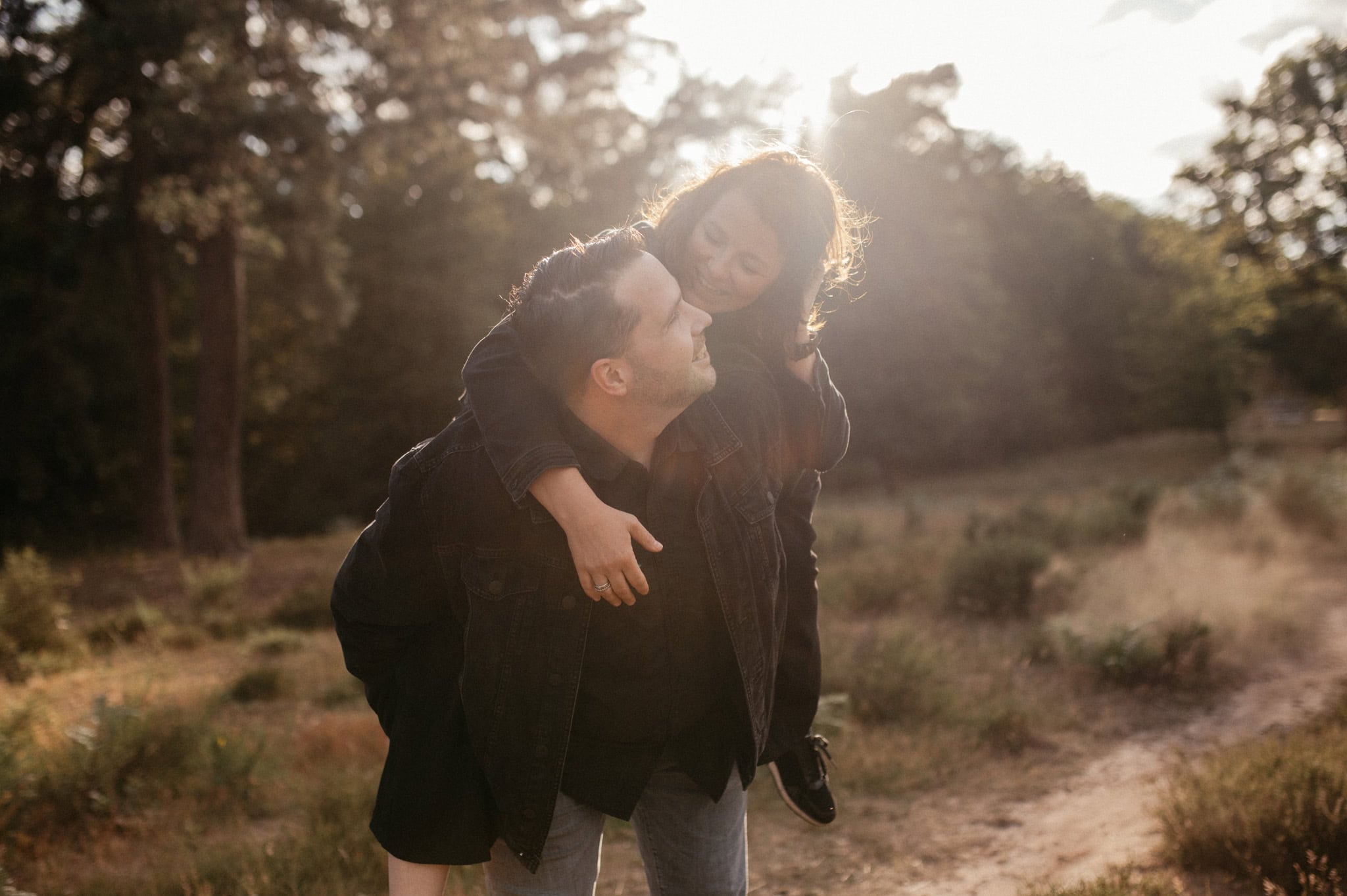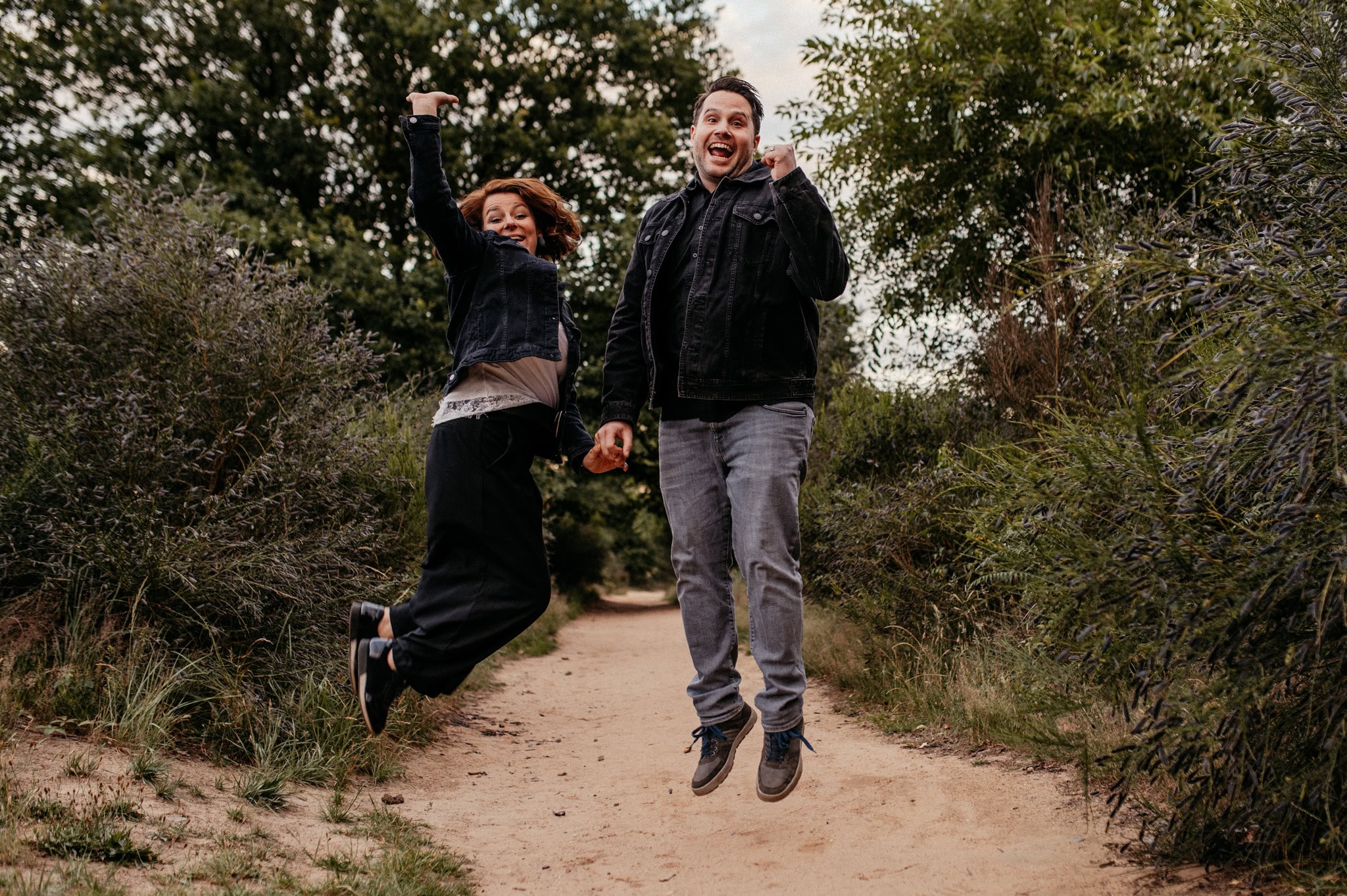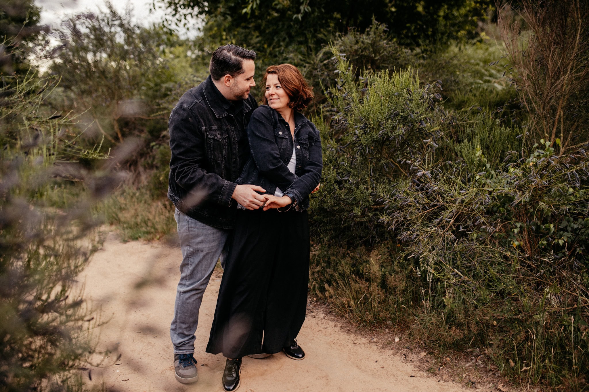 In der Wahner Heide angekommen stürzten sich die beiden Berufsfotografinnen dann erst mal auf Ihre Kameras und begannen zu fachsimpeln und beschäftigten sich dann vorläufig miteinander. Nach ein paar Minuten war es dann so weit – Auftritt zum Paar-Shooting.