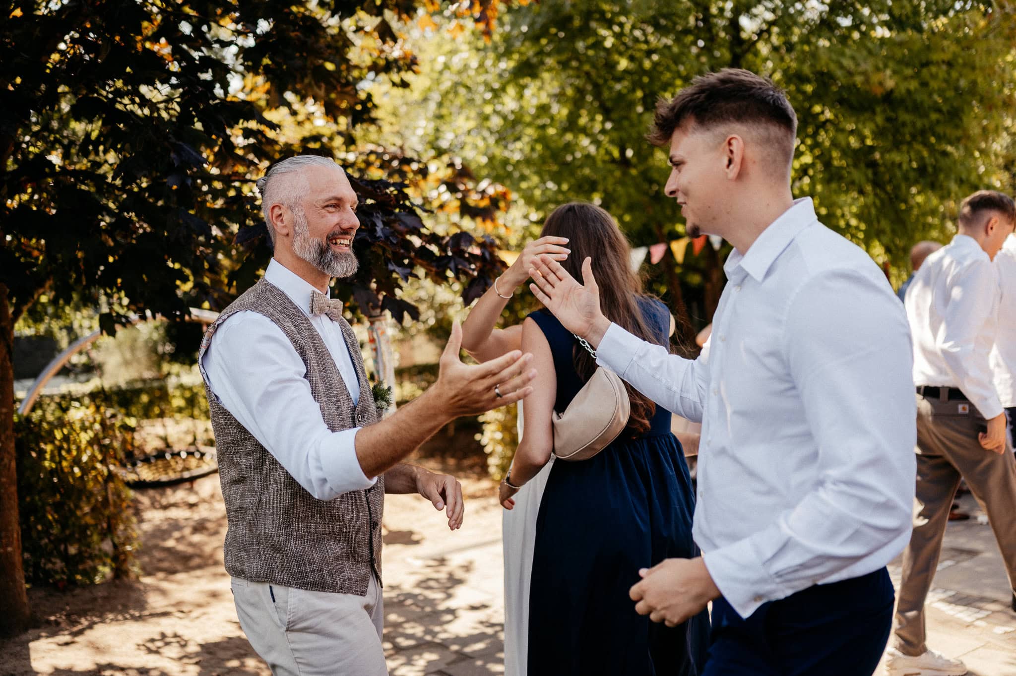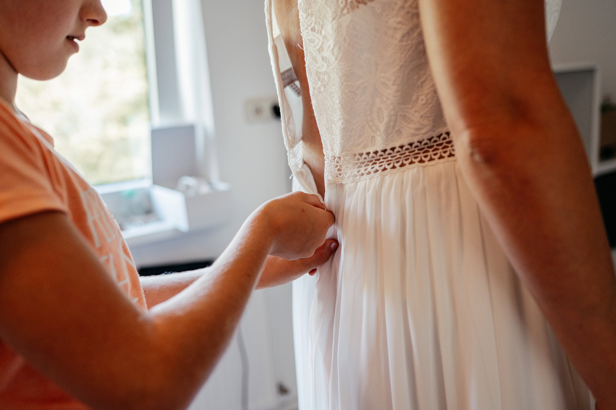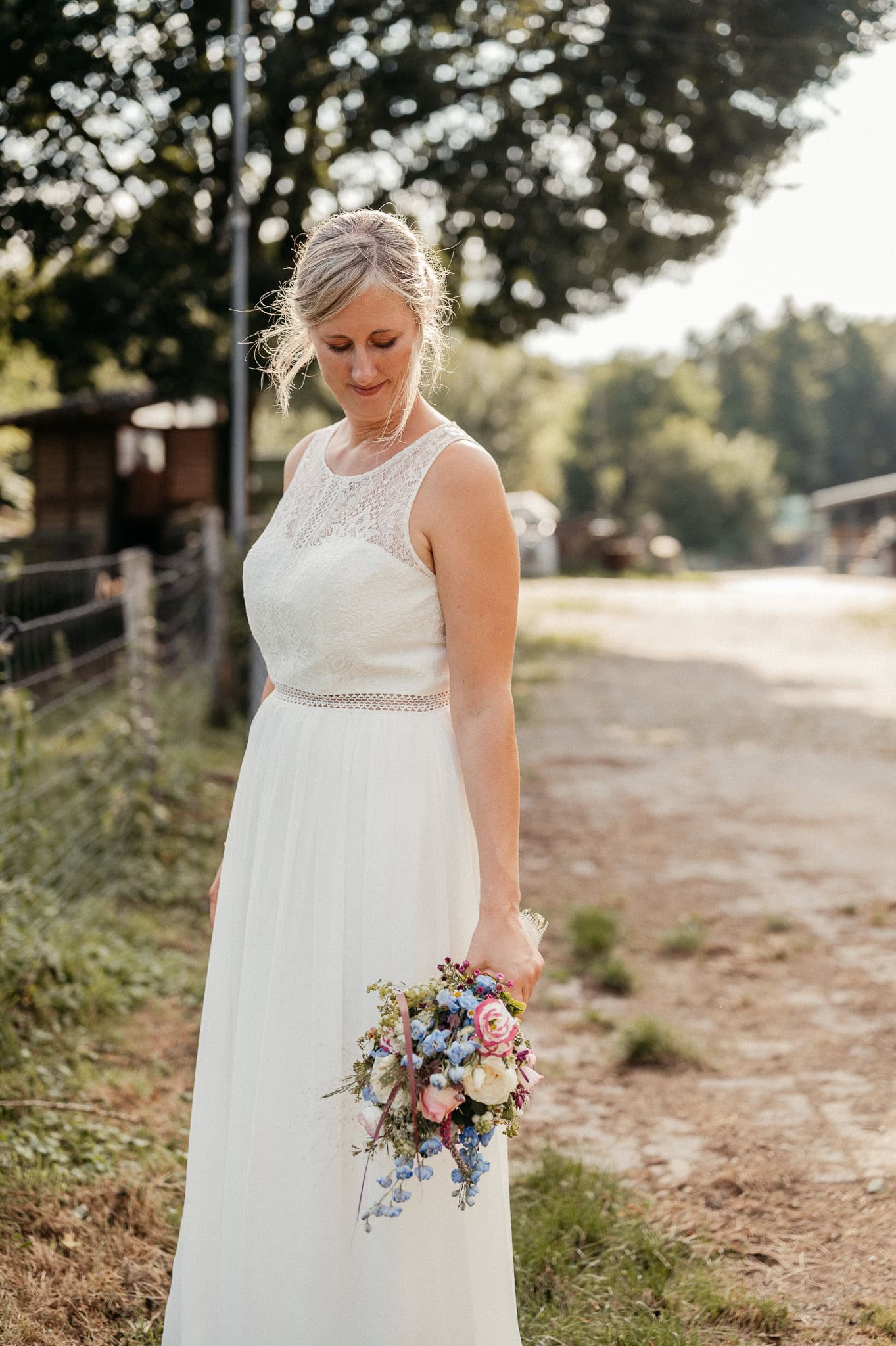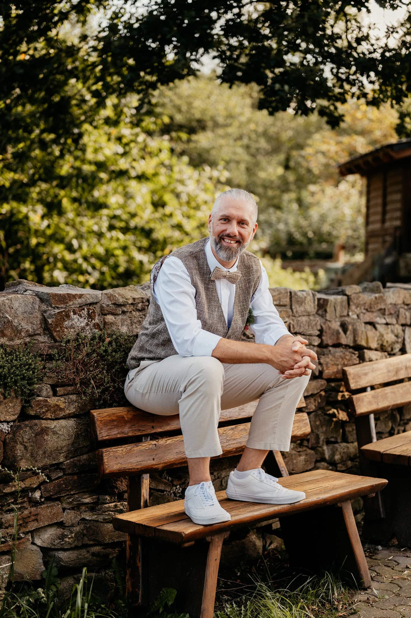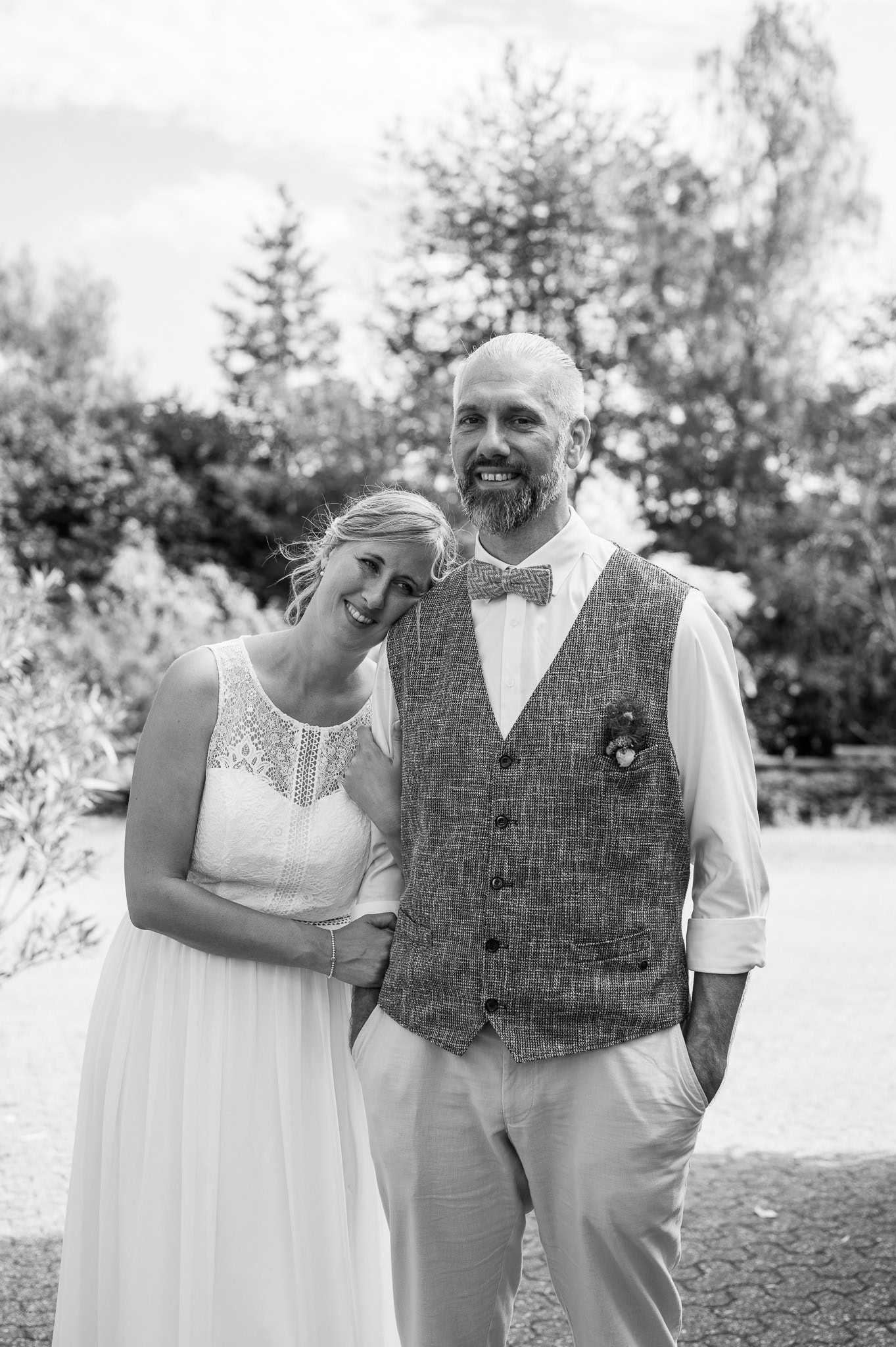 In den meisten Fällen bietet es sich vor Ort an die Hochzeitspaarfotos und Gruppenbilder zu machen. So ein schöner Hof, wie hier bietet oft viele verschieden Fotospots an, die für die Hochzeitsfotos super genutzt werden können. Vor Ort ergeben sich spontane Momente, die eingefangen werden können. Paarfotos entstehen oft natürlich im Ablauf des Tages. Kein Stress, keine langen Wege, kein Zeitdruck.