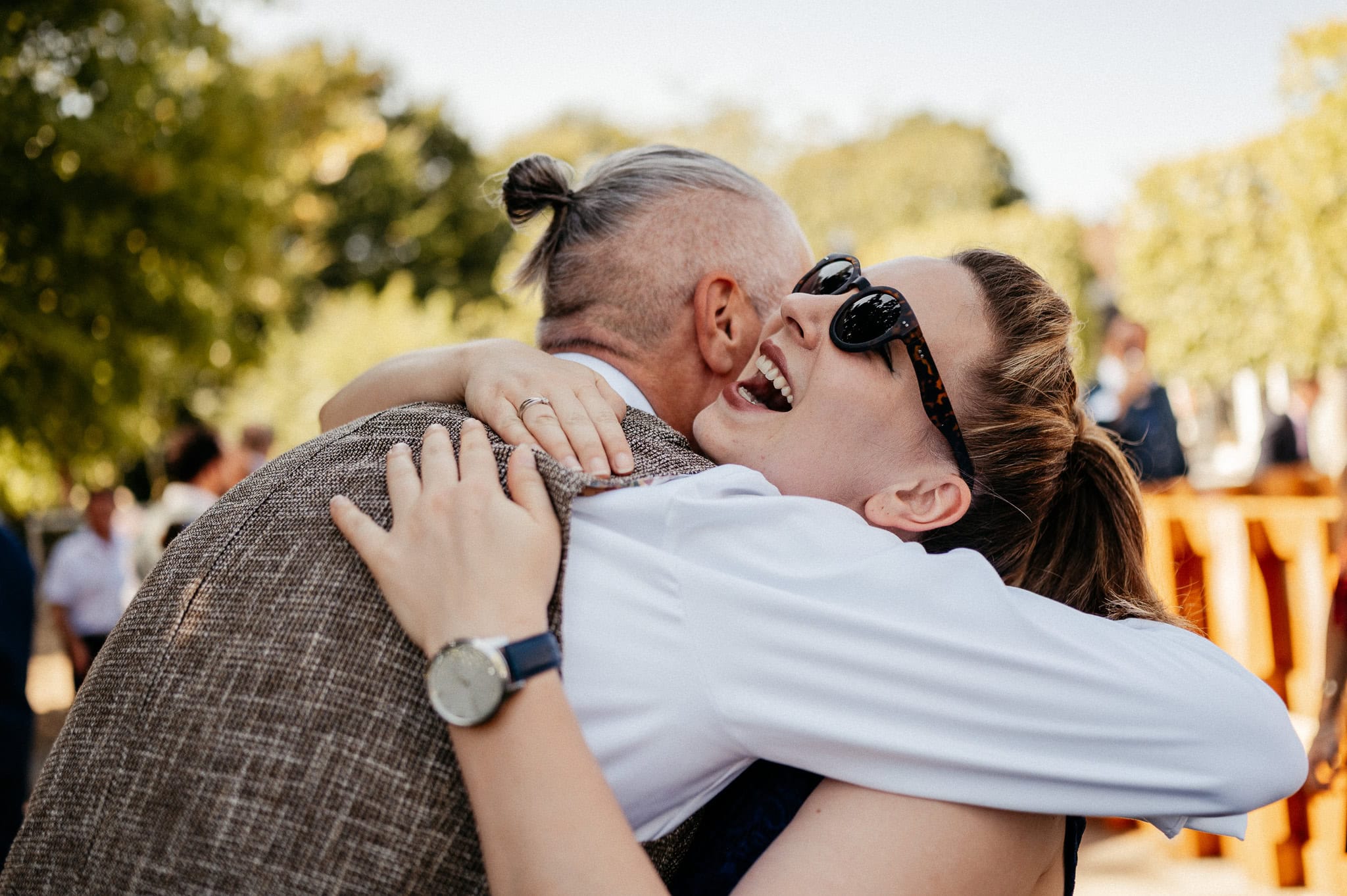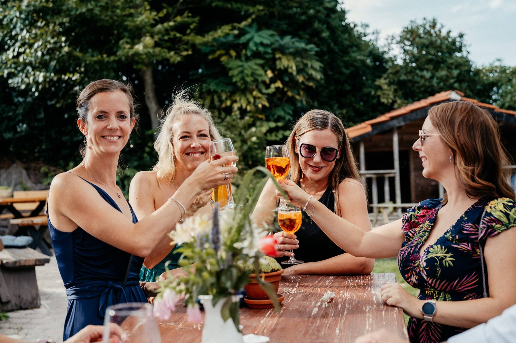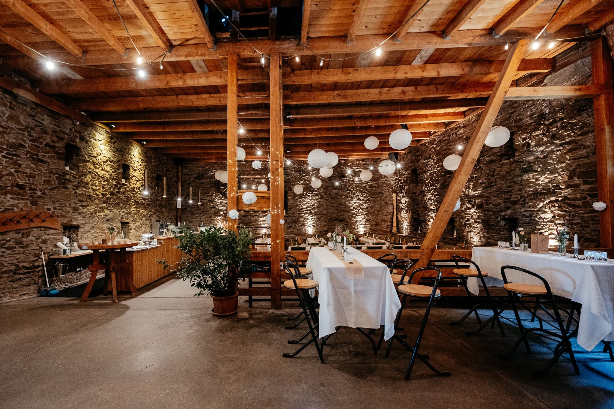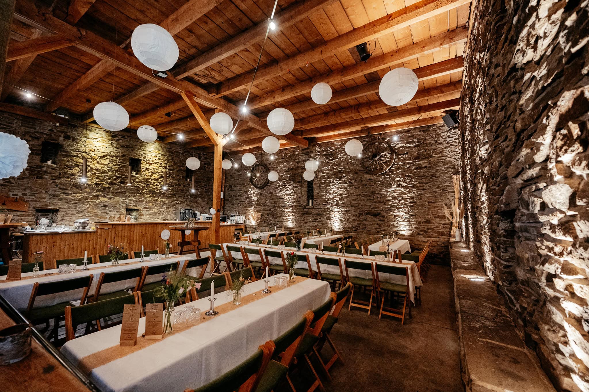 Scheunen schaffen eine entspannte Grundstimmung. Die Feier fühlt sich persönlich an, Gäste verteilen sich locker im Raum und alles wirkt weniger formell. Für Euch als Brautpaar bedeutet das, dass Ihr Euren Tag bewusster erlebt. Für uns als Fotografinnen entstehen dadurch Bilder, die genau diese Nähe und Leichtigkeit widerspiegeln. Locations wie die Bauer Kammesheidt–Festscheune verbinden Offenheit mit einer Atmosphäre, in der man sich sofort wohlfühlt.