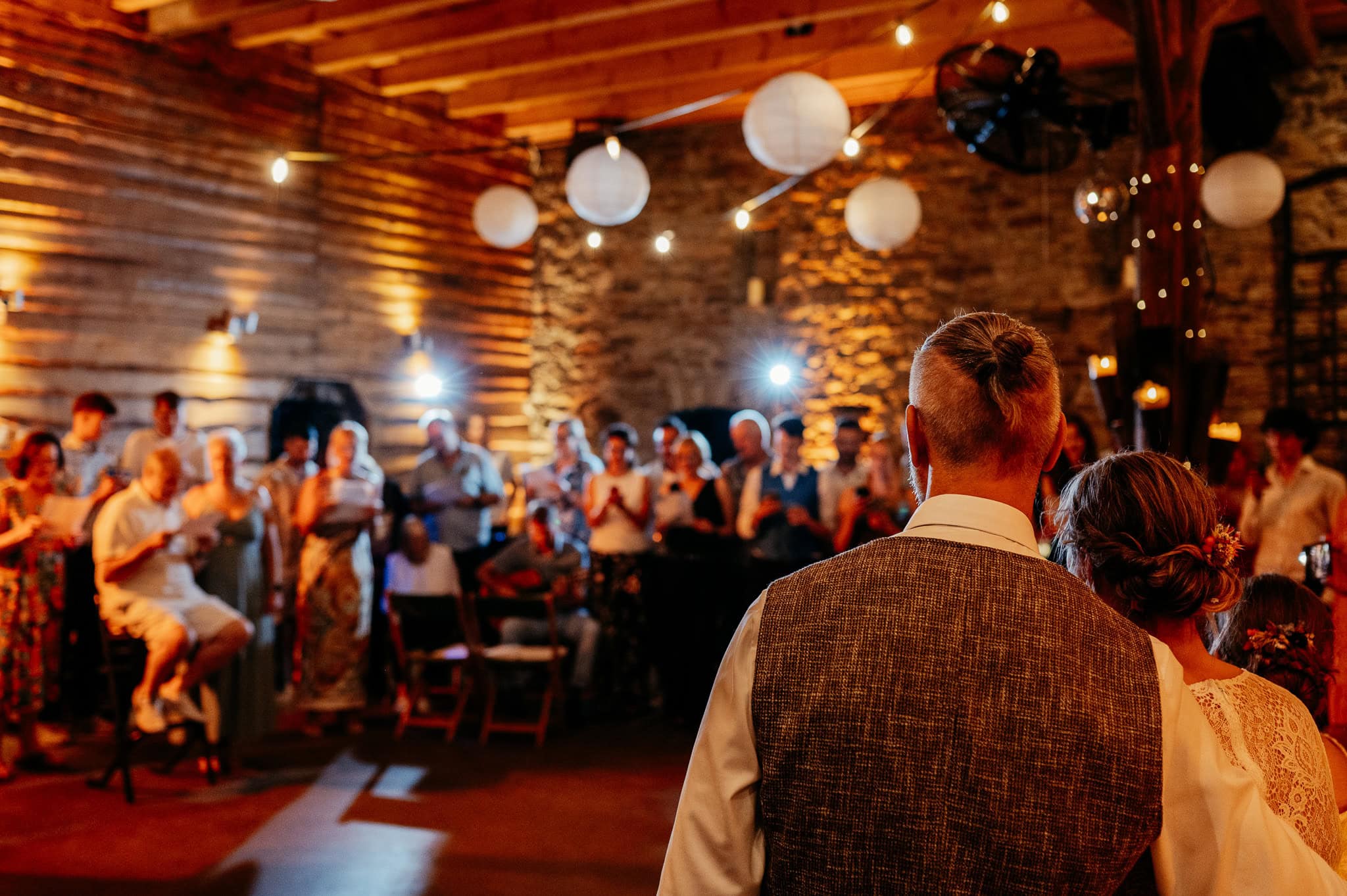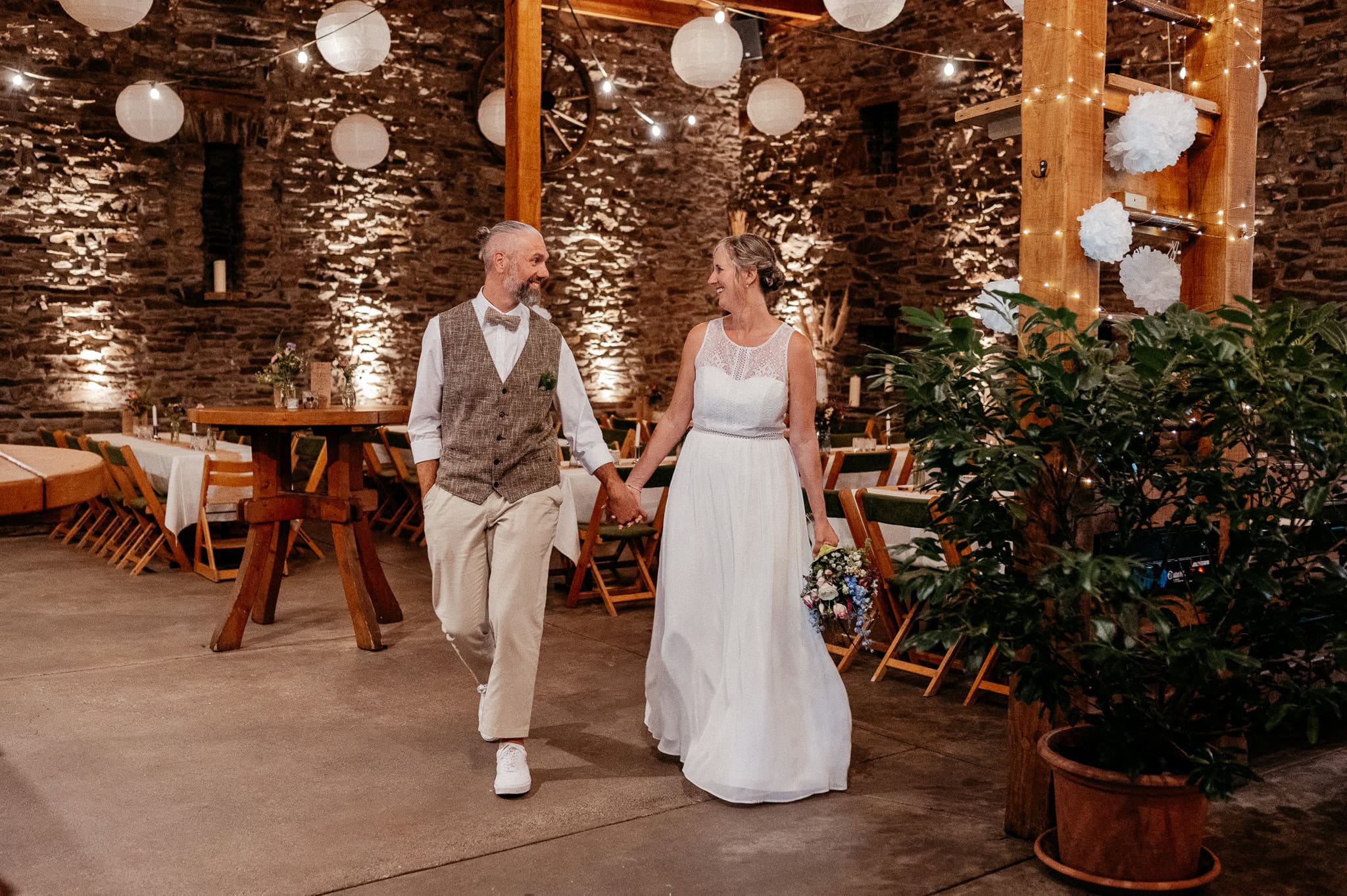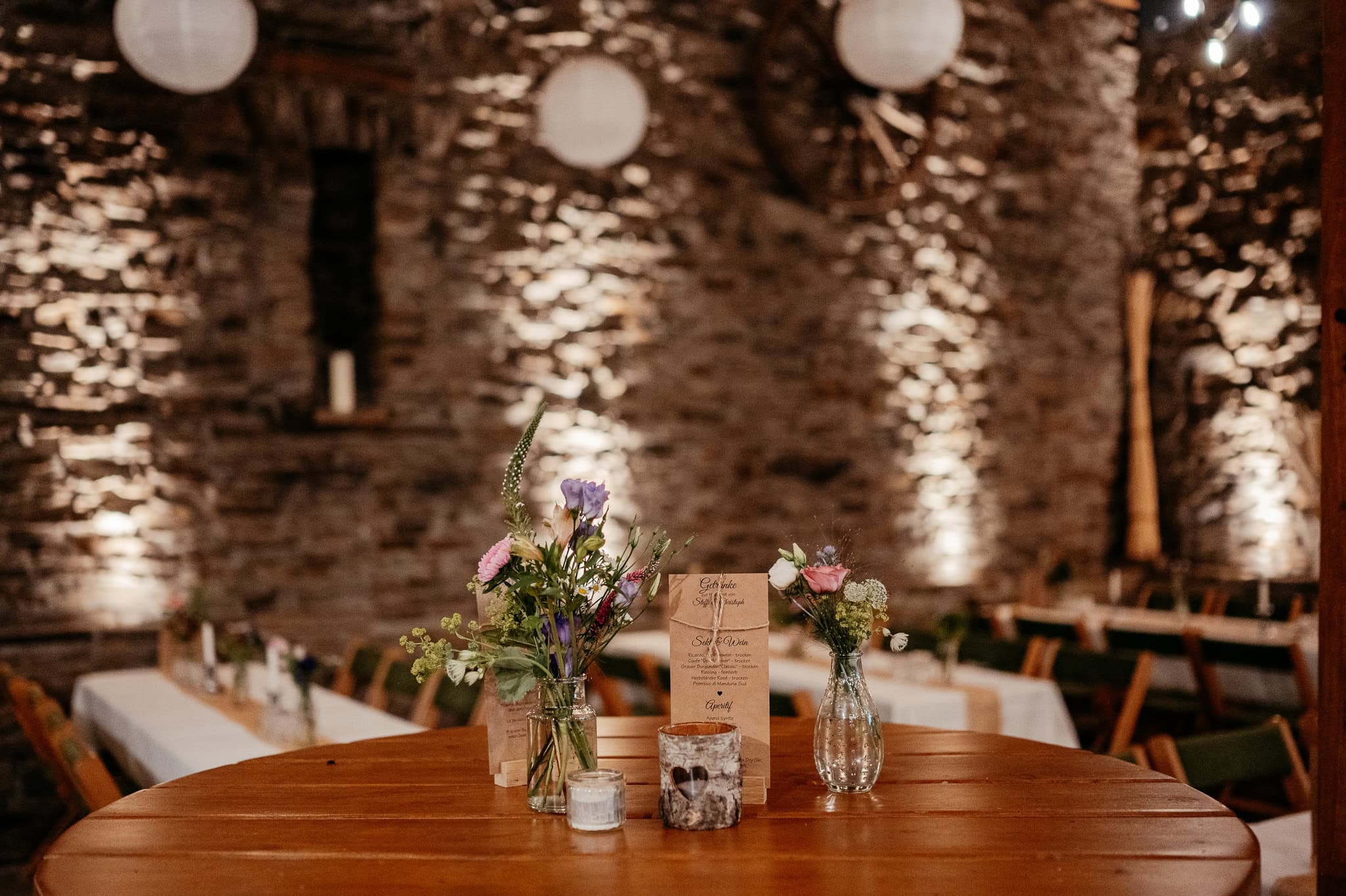Wenn der Tag langsam in den Abend übergeht, verändert sich die Stimmung in der Scheune spürbar. Das Licht wird weicher, die Atmosphäre ruhiger und intimer. Diese Stimmung trägt die Bilder fast von selbst und sorgt für emotionale Aufnahmen, die Euren Hochzeitstag stimmungsvoll abrunden.