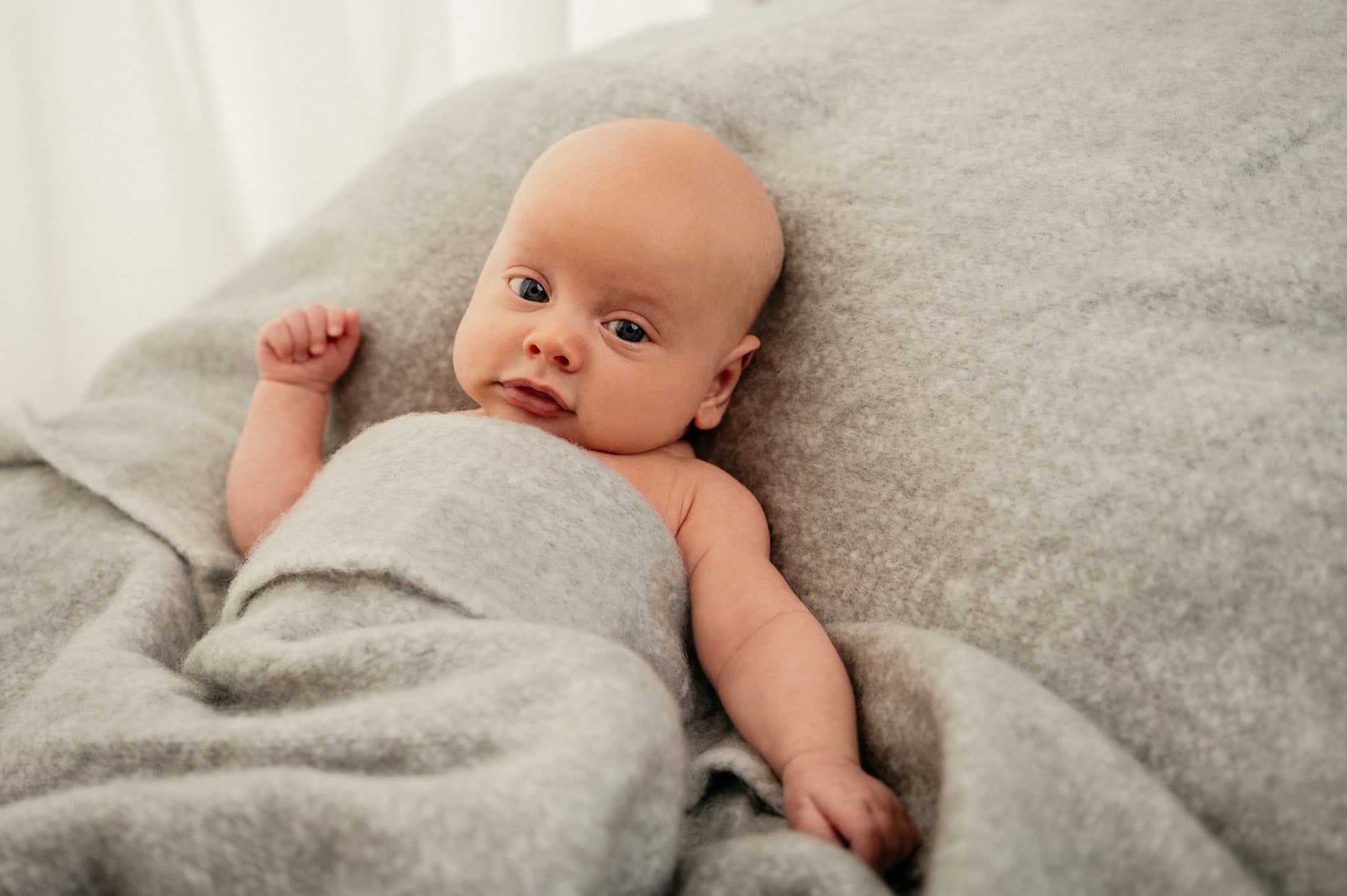Der Raum ist angenehm warm, damit die Kleinen sich auch ohne Kleidung wohlfühlen. Wir achten auf gedämpftes Licht und so wenig Reiz wie möglich – perfekt, um sanft einzuschlafen. Während des Shootings arbeiten wir mit Tageslicht oder Tageslichtlampen, sodass die Babys nicht durch Blitzlicht gestört werden.